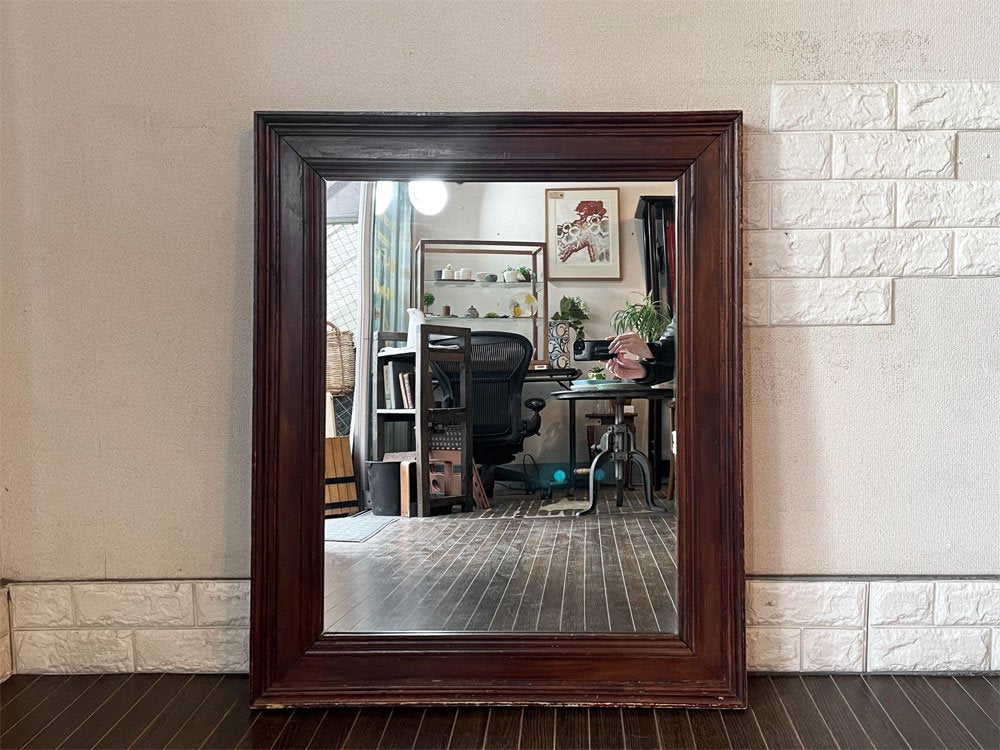 こちらは、落ち着きあるマホガニー無垢材をフレームに使用したウォールミラーです。