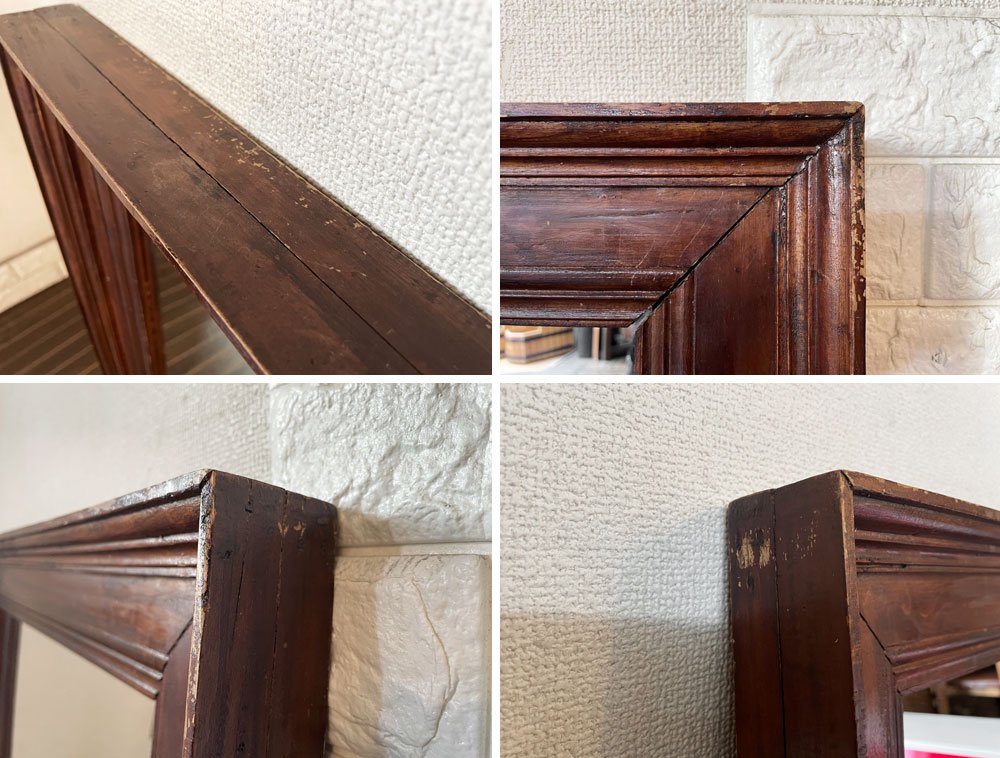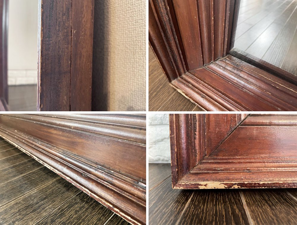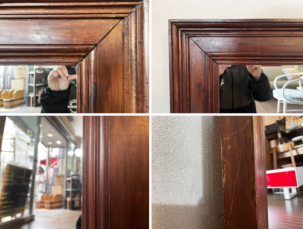 使用に伴う、表面の削れや擦れ、傷が全体にございます。また、フレームの隙間や鏡面のくすみ、小傷、木部の割れやささくれ等が見受けられますが、ご使用に支障はございません。アンティークのような風合いをお楽しみ頂きながら実用いただけます。
