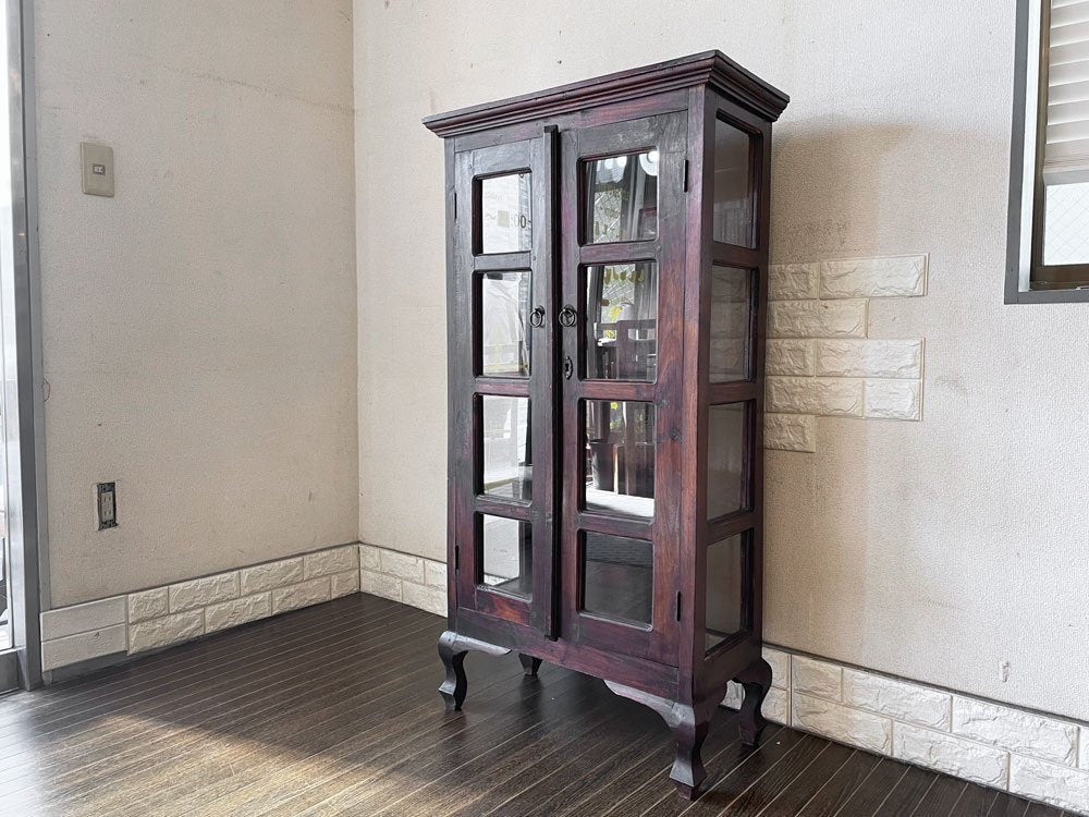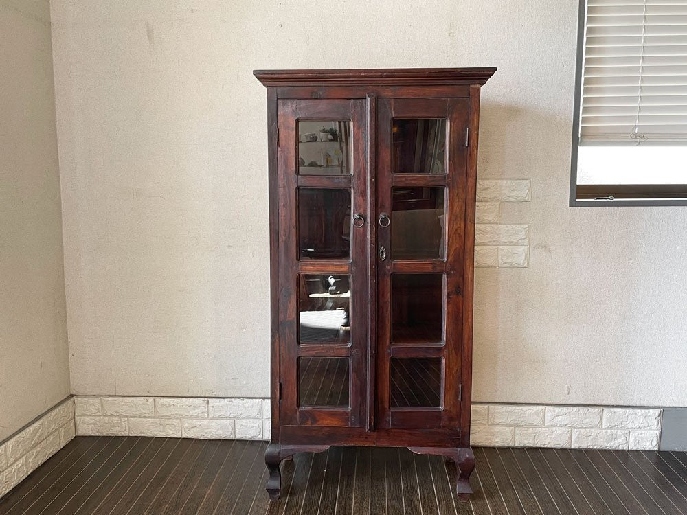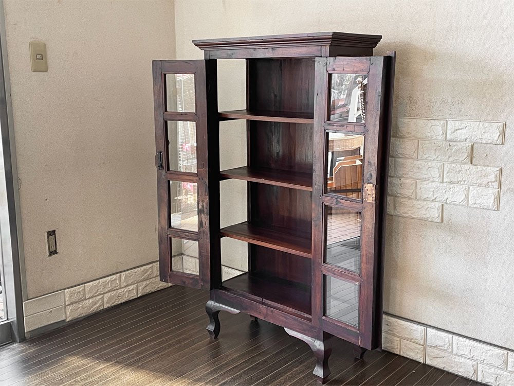 マホガニー無垢材 ガラスキャビネット