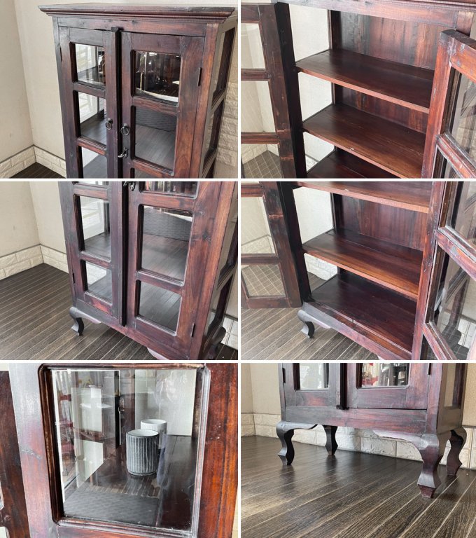 こちらは、同ブランドのガラスキャビネット。クラシカルなデザインとマホガニー材の風合いがレトロな雰囲気を醸し出しています。