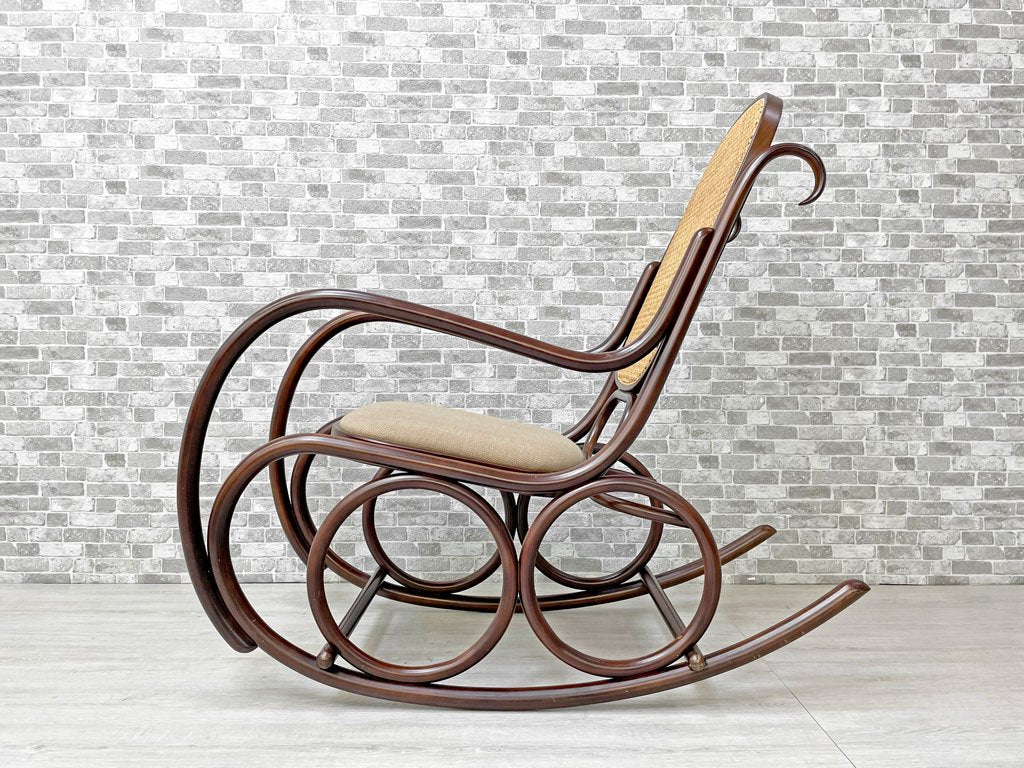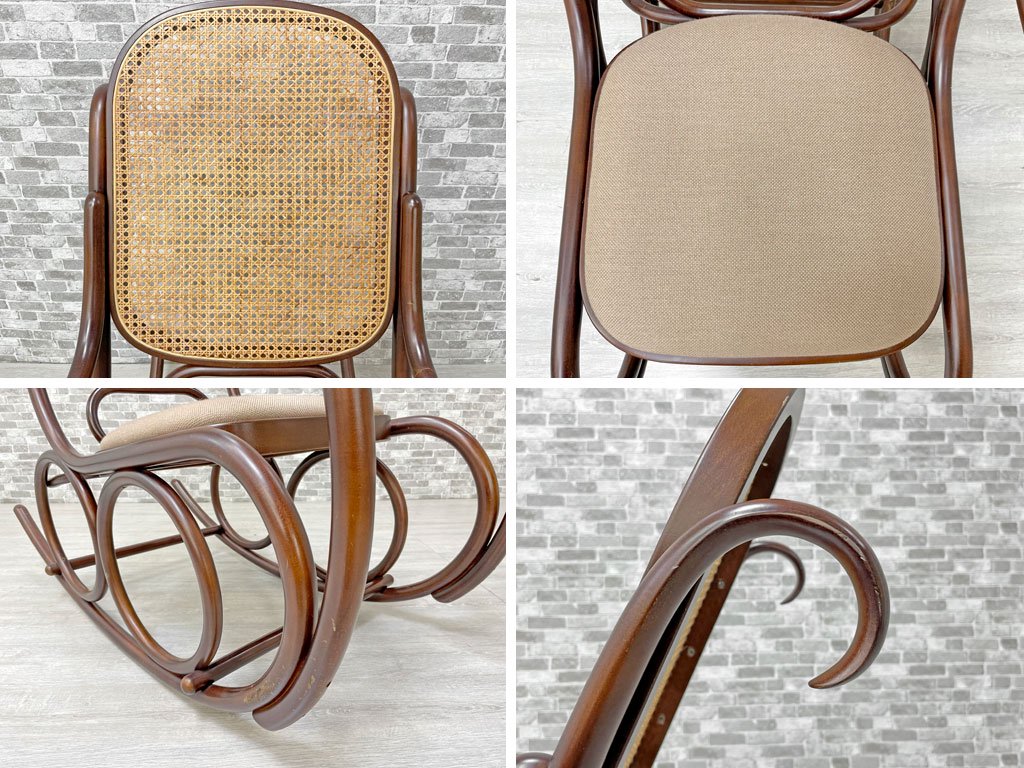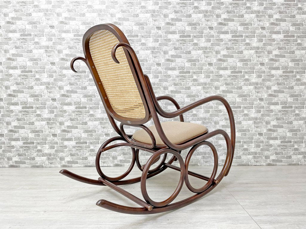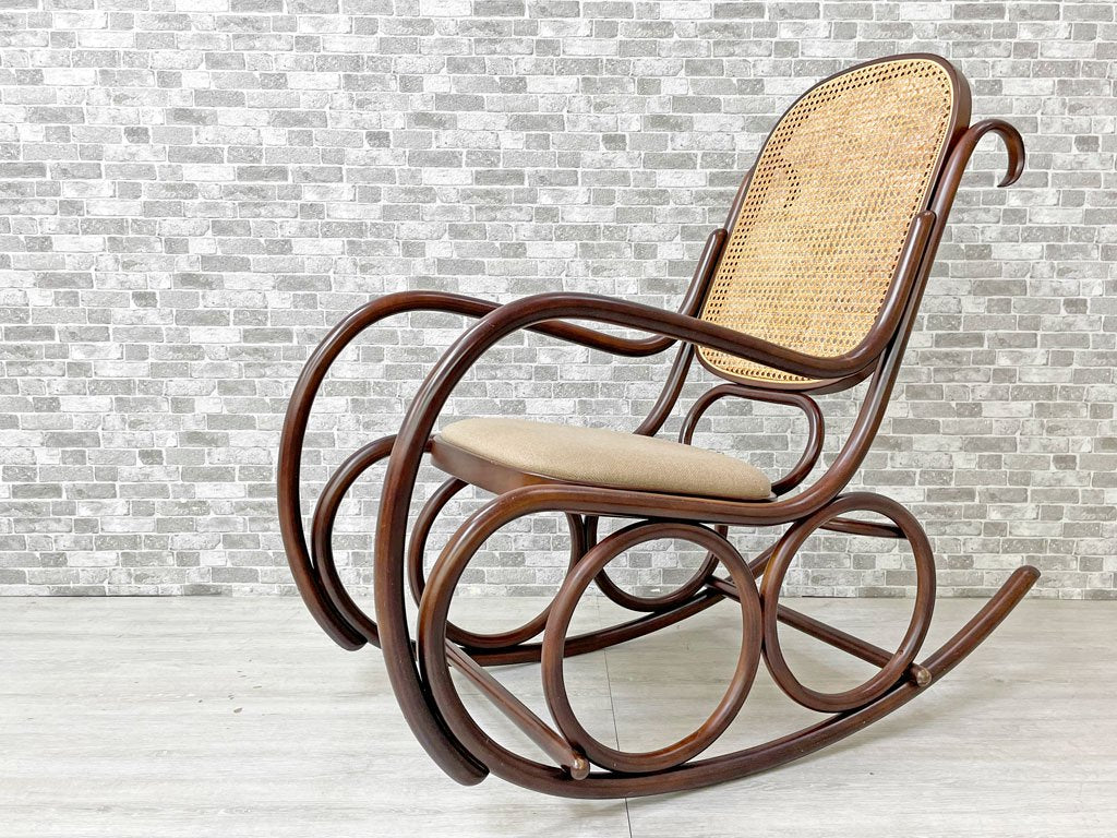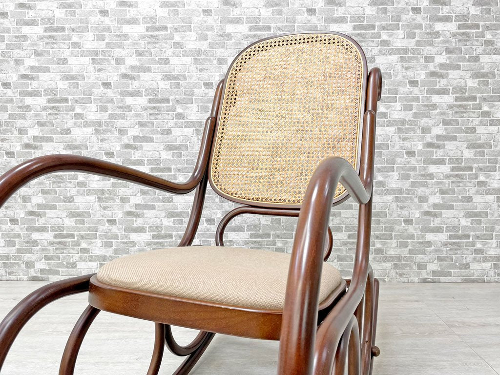 秋田木工 Akimoku ロッキングチェア 5RU ブナ材 ラタン ファブリック ウォールナット色 曲木 IDC大塚家具 定価¥253,000- ●