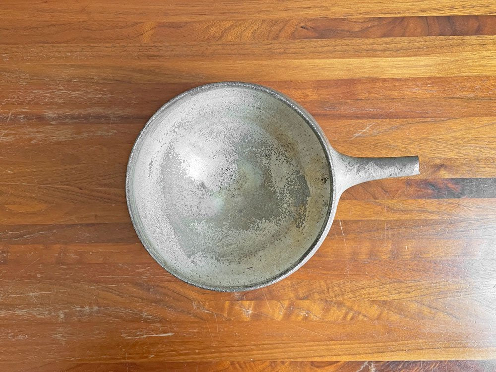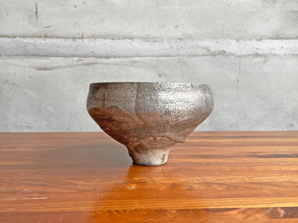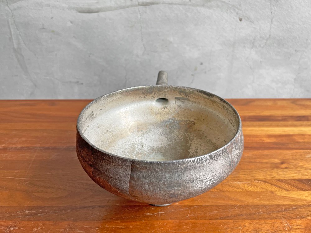 場所によって変わる濃淡や剥離した部分から見える素地の色、釉薬の流れ、経年によって出てくる色の深みが銀彩作品の魅力的なところです。