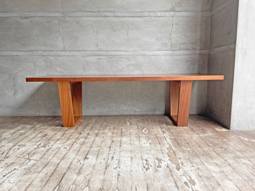 シンプルで直線的なデザインにも拘らず、鋭利な冷たさを感じられないのは、ウォールナットの持つ温和な雰囲気と、暖かみのある色ならでは。
