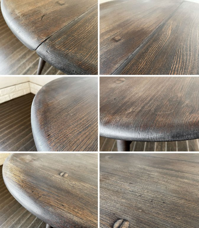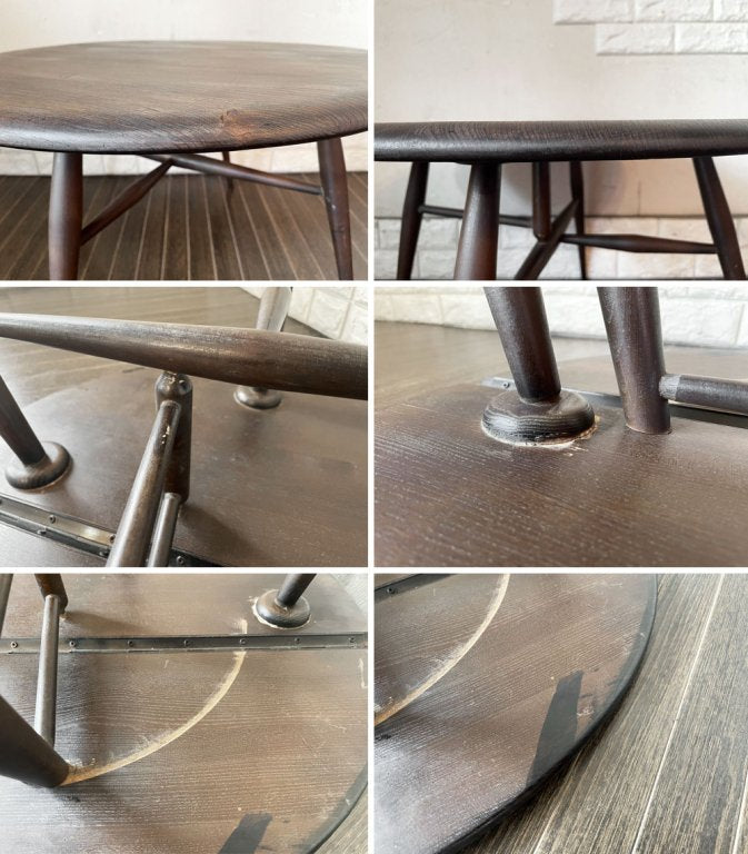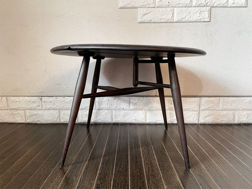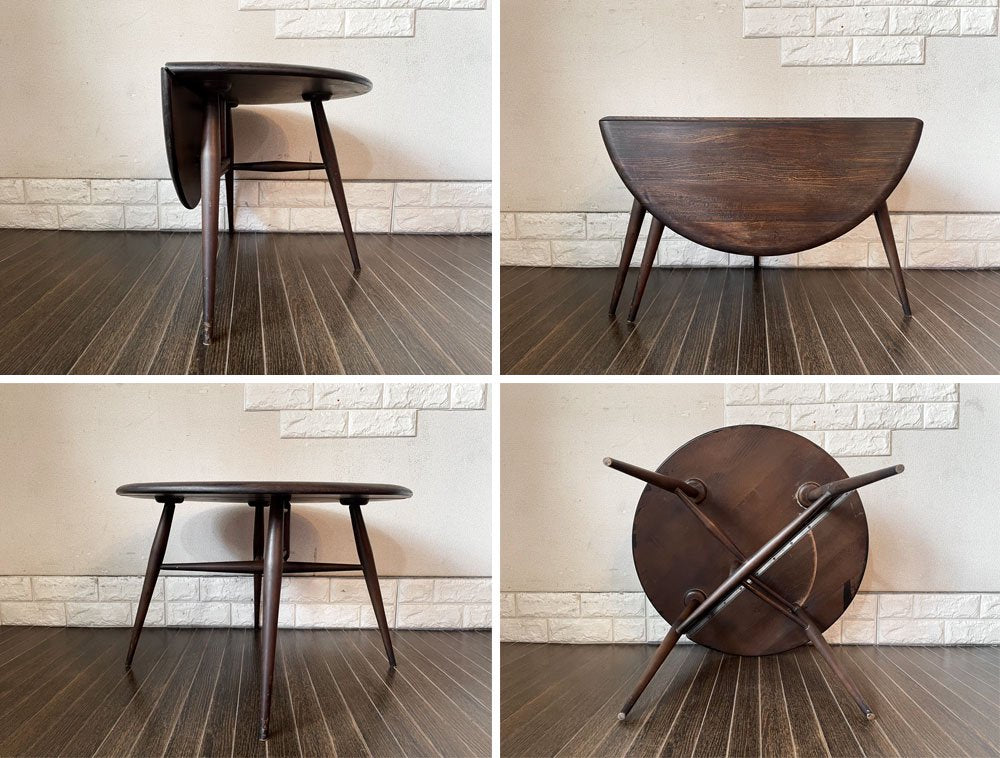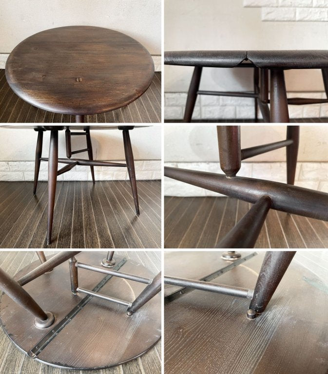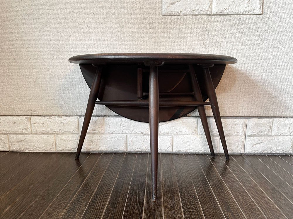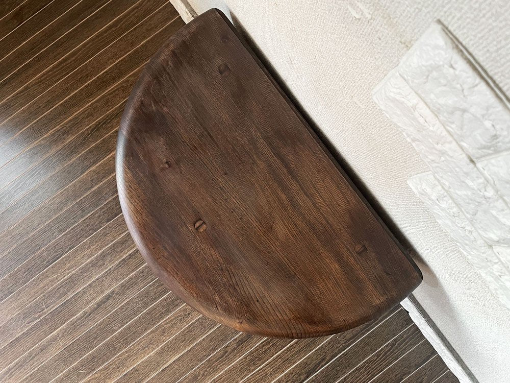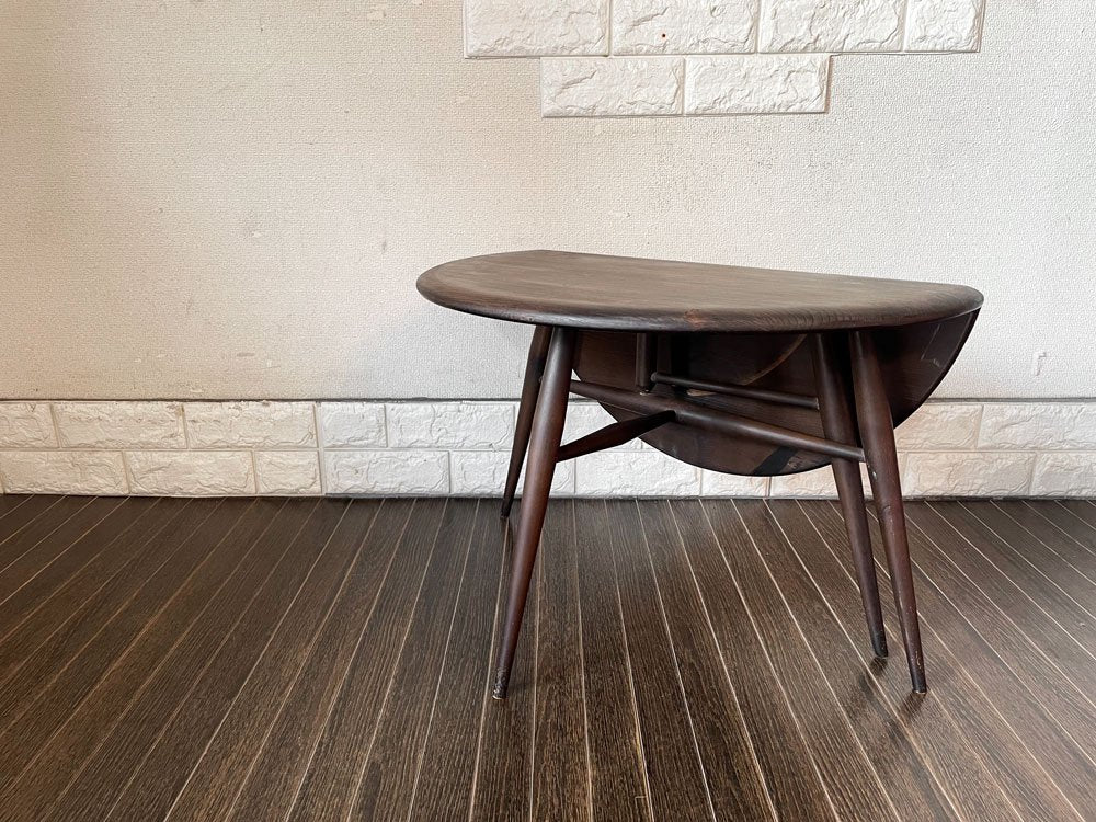 アーコール Ercol ドロップリーフ コーヒーテーブル サイドテーブル ハーフムーンテーブル Φ61cm エルム×ビーチ材 ブラウン UKビンテージ 英国家具 ◎