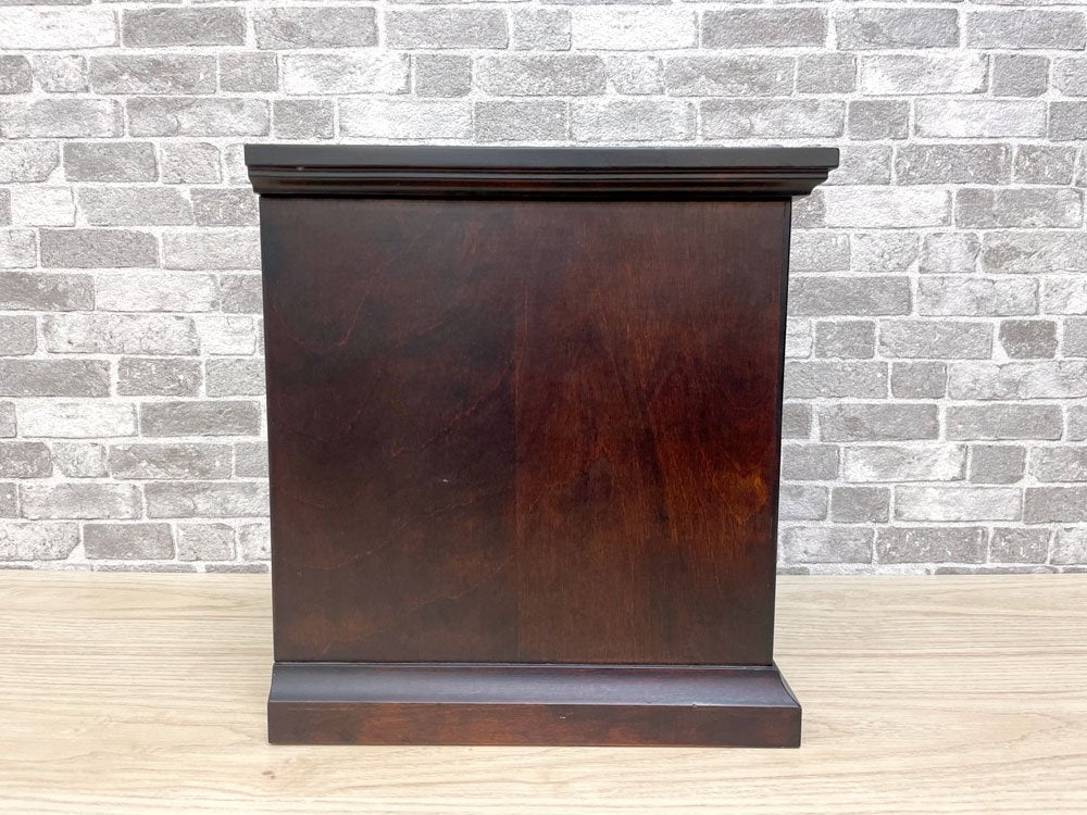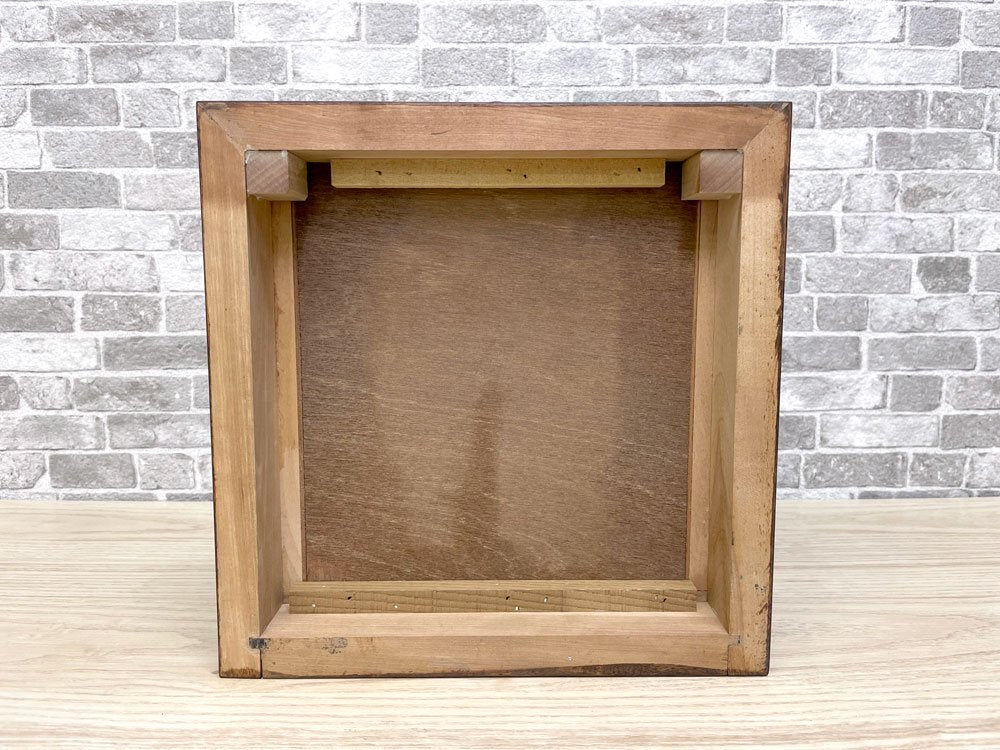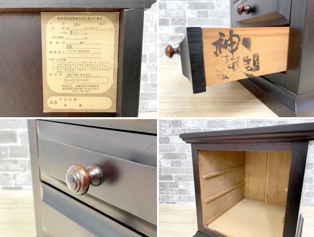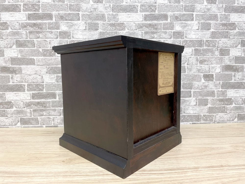 30cm角程度の大きさでございますので、手芸用の裁縫箱や、サイドボードやテーブルの上に設置し小物の収納用としてもご活用頂ける便利なお小抽斗です。