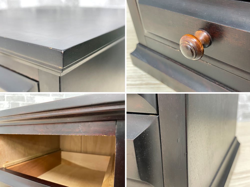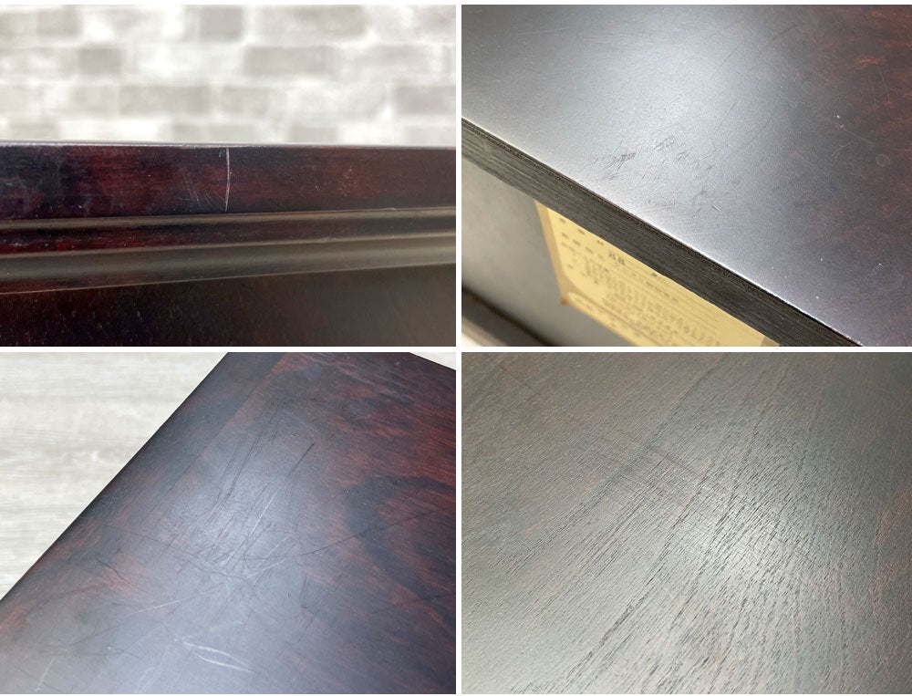 天板に細かな擦り傷が複数、縁に打痕が数箇所あり、引き出し内部には僅かに取り切れない汚れがございます。