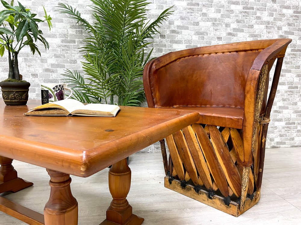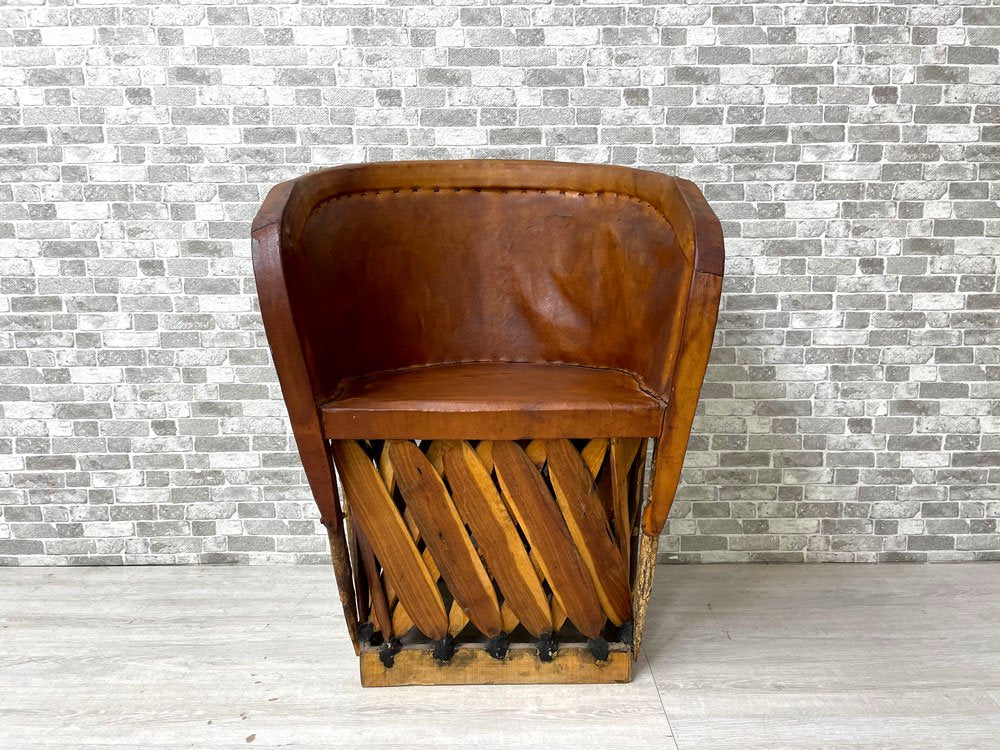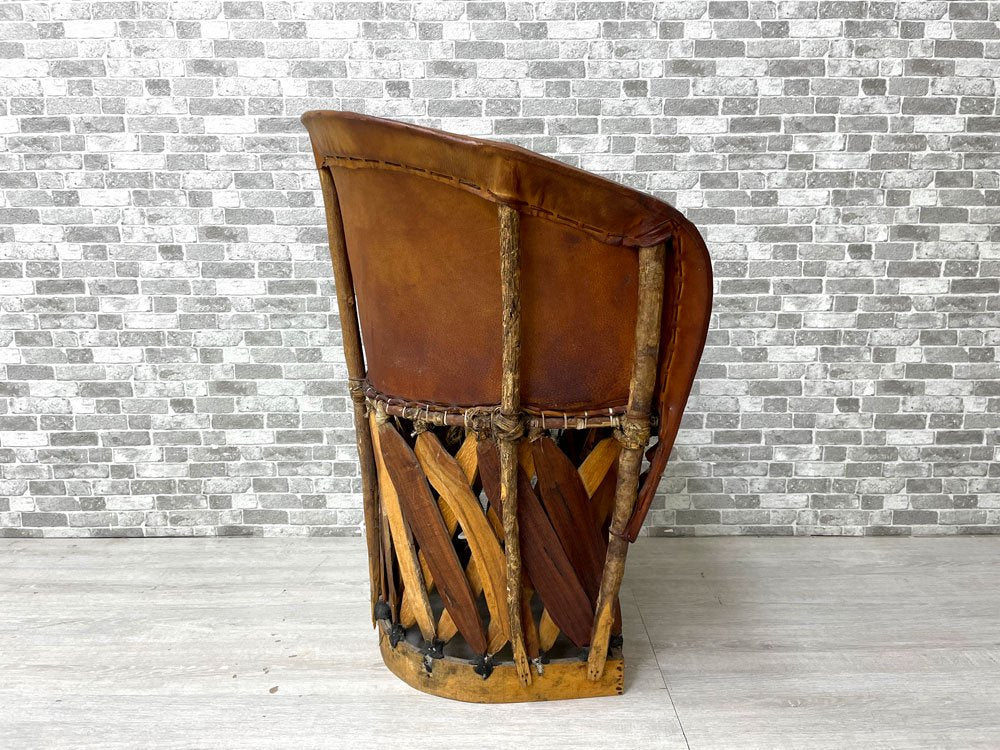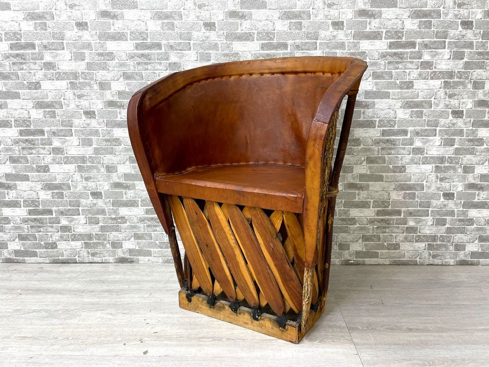 端材を組み合わせた表情豊かなウッドフレームに、味わい深い豚革が張られた唯一無二のデザイン。メキシコを代表する伝統工芸椅子『 エキパレスチェア 』の出品です!