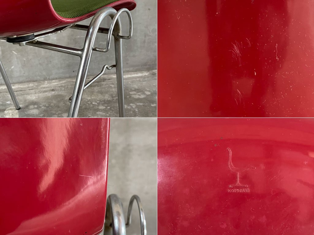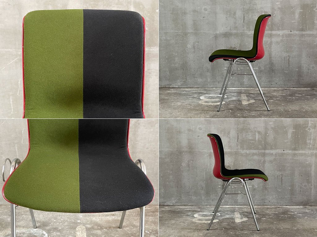 コトブキ KOTOBUKI 柳宗理 サイドチェア 別注レッドシェル グリーン ブラック ストライプ Ribaco NC生地張替 ジャパニーズミッドセンチュリー Midサイズ 〓