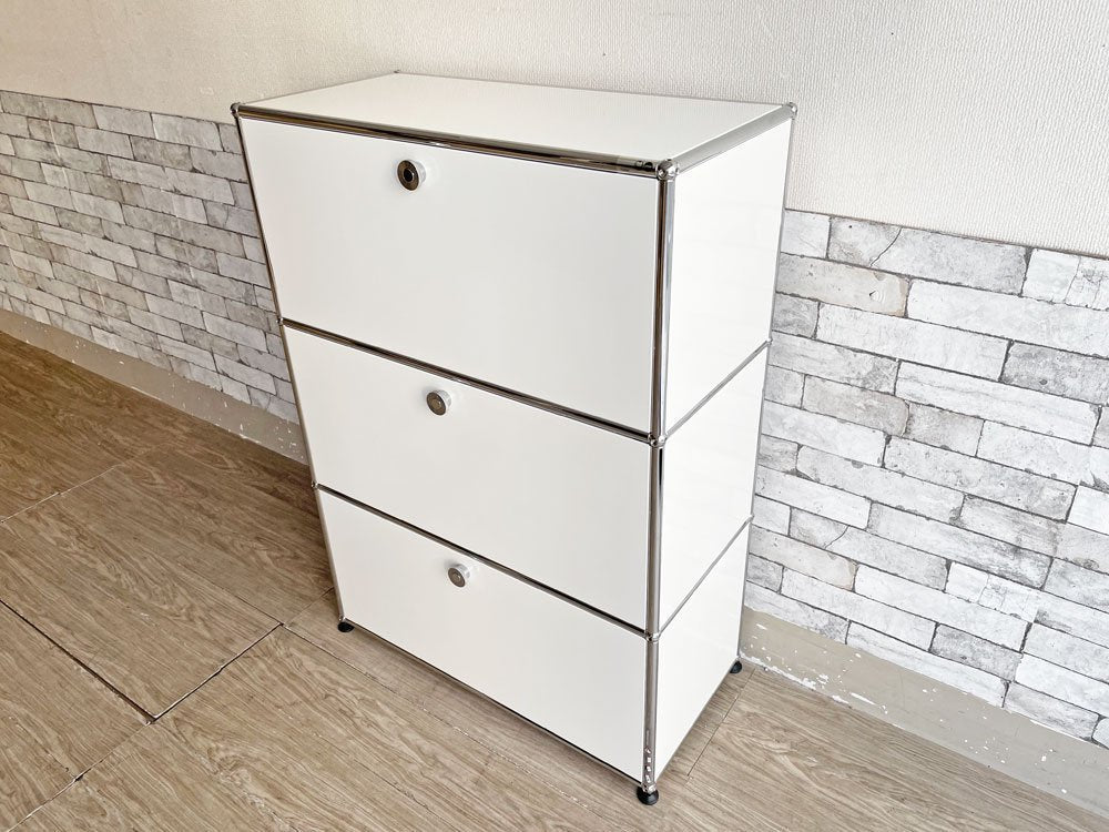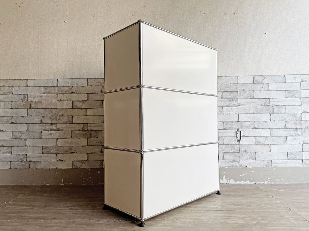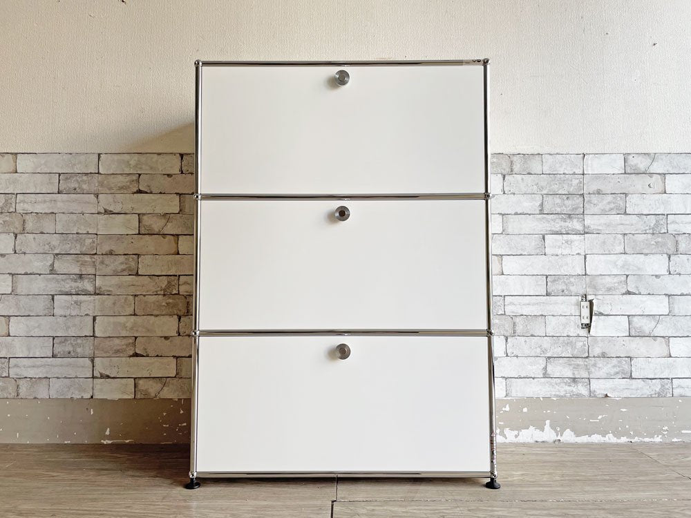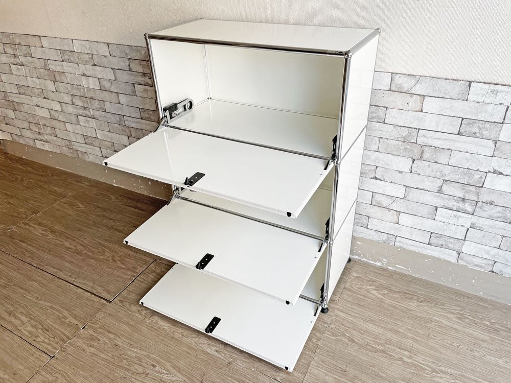ユーエスエムハラー USM Haller モジュラーファニチャー ハラーシステム キャビネット 1列3段 ホワイト ドロップダウンドア ソフトオープン / クローズ 新品未使用品 箱入 〓