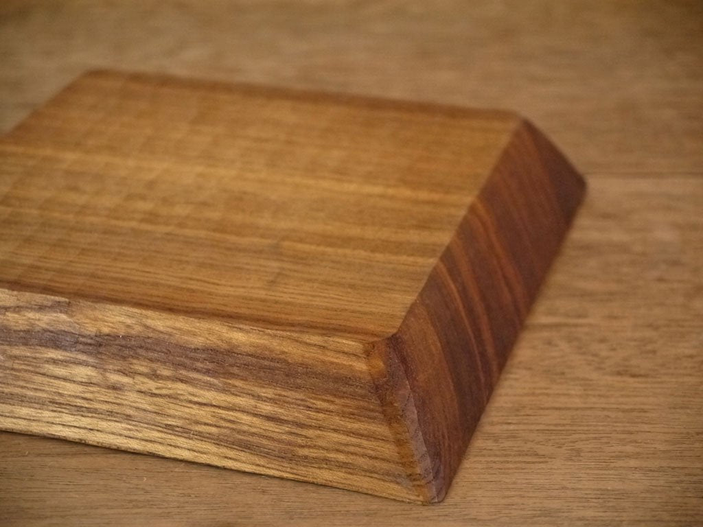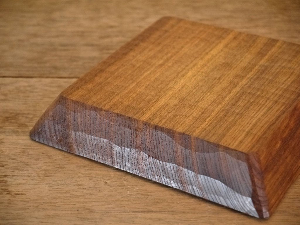 緻密な木肌と重硬な気質、磨くと光沢が出ることで知られており、特有の優しい赤みと光沢に三谷氏の手が