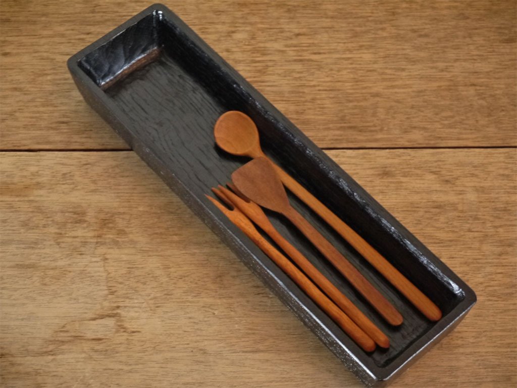 現代木工作家三谷龍二氏の黒漆のカトラリーケースです。