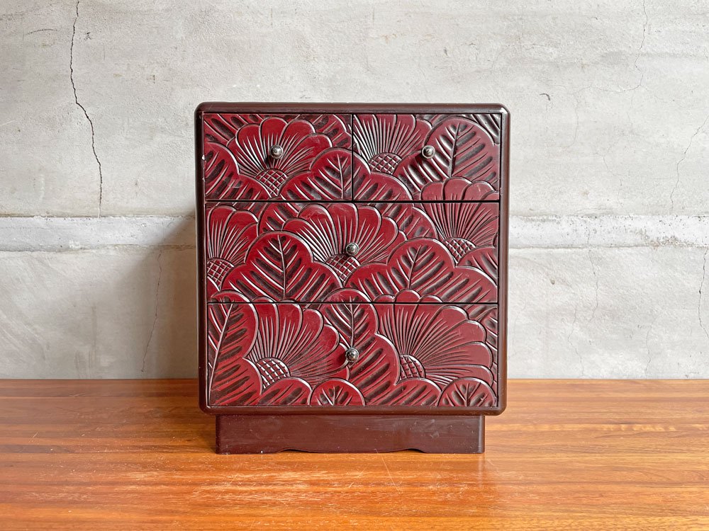 日光彫り 小引き出し 抽斗 三段 小箪笥 民芸品 伝統工芸 ♪