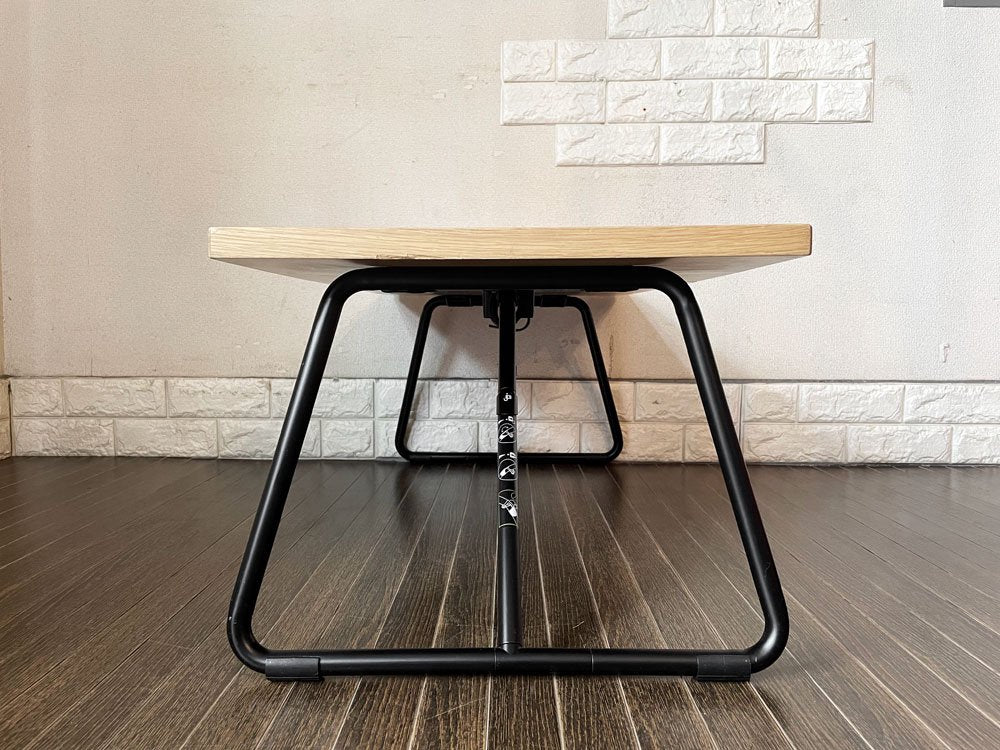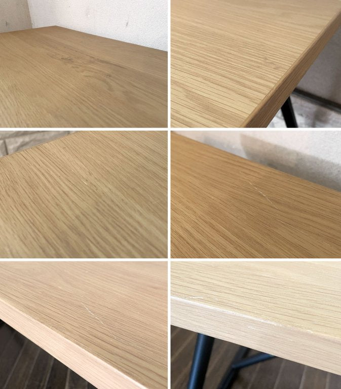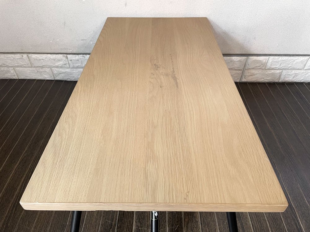 オーク天板に黒く塗装されたスチール脚を組み合わせたシンプルデザイン。シンプルだからこそオーク材の温もりある表情が際立ちます。