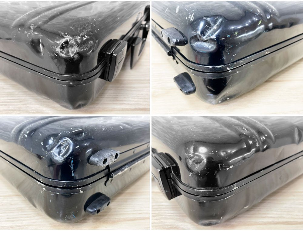 使用に伴う擦れ傷やペイントロスのほか、角を中心とした複数の打痕と内張りの細かな破れ等強く使用感がございます。また開閉のロックは機能致しますが、時折ロックの金具上側に半分ほど隙間が見える場合がございます。押し込むようにしてロックを掛ければ問題なくご使用頂けますが予めご承知おき下さいませ。