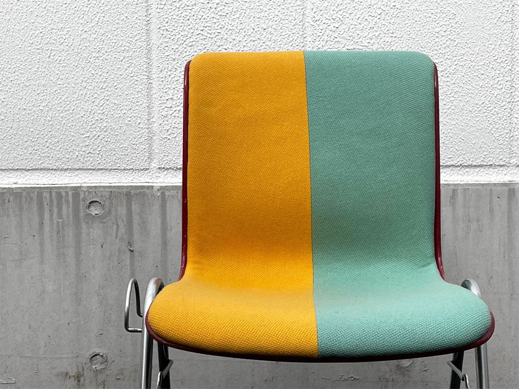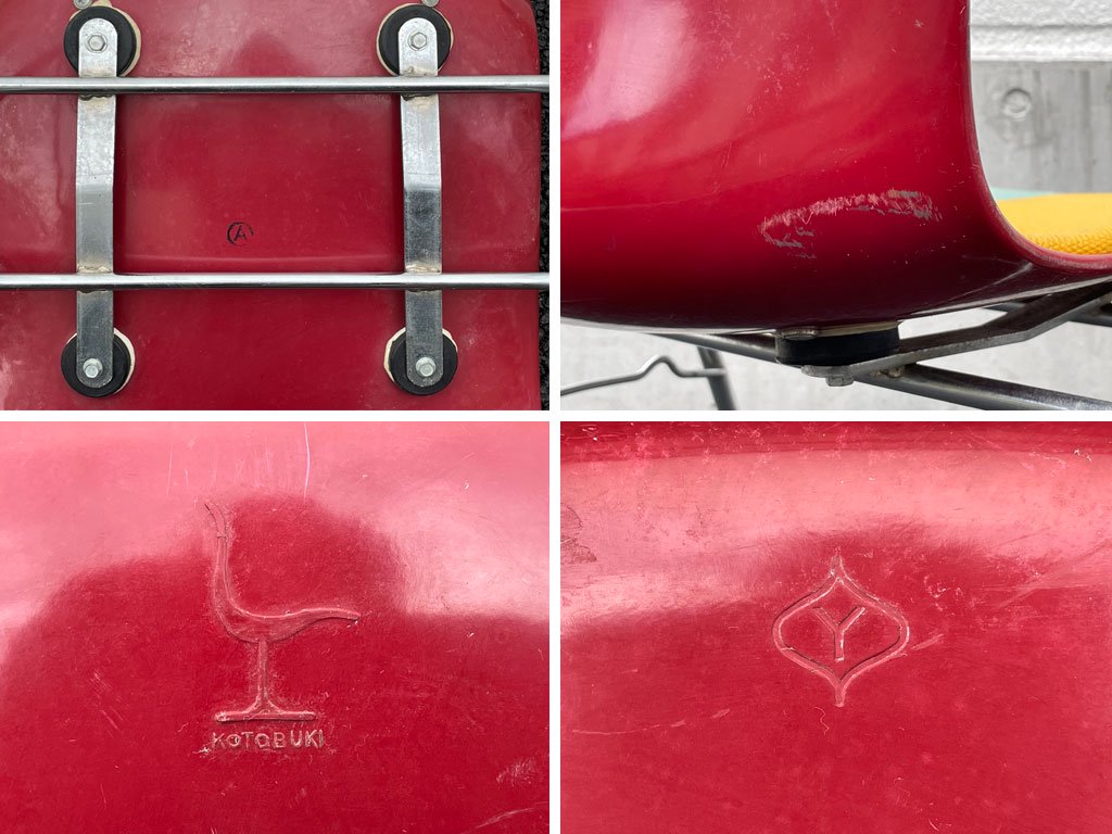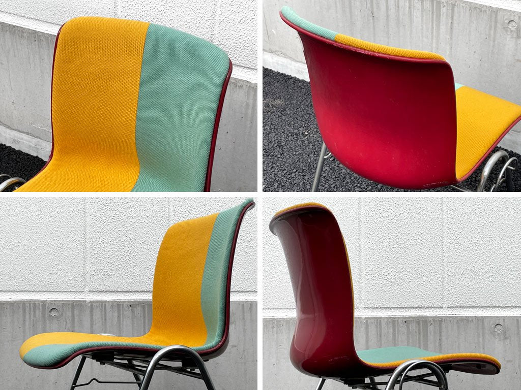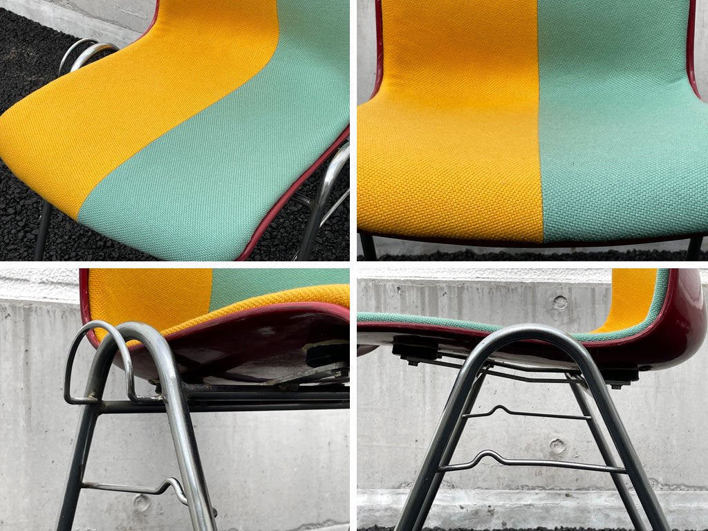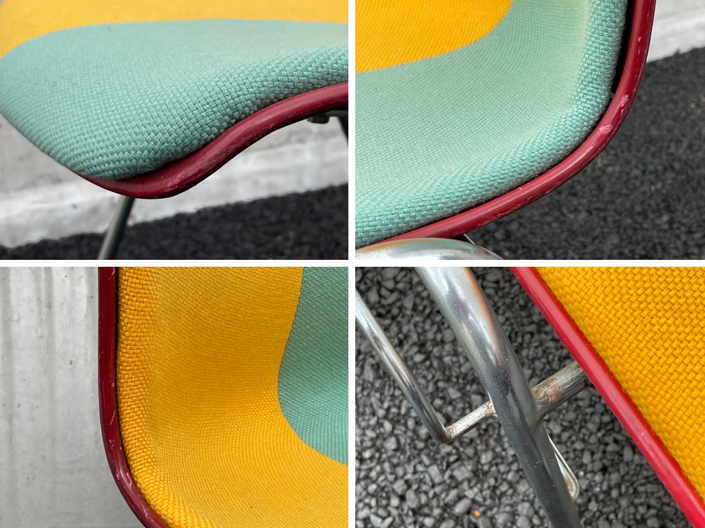 コトブキ KOTOBUKI 柳宗理 FRP サイドチェア 別注 レッドシェル イエロー×ライトグリーン Ribaco生地 スタッキングベース ミッドセンチュリー ビンテージ Lowタイプ ◇