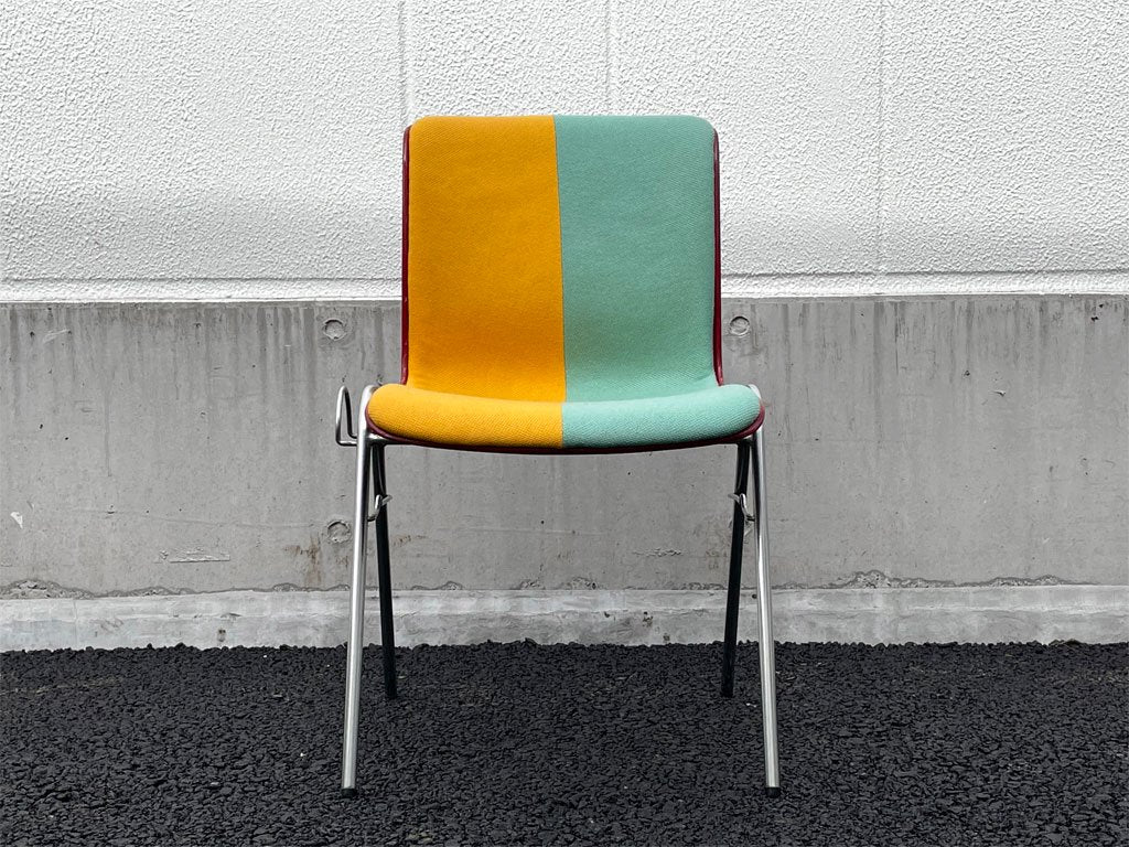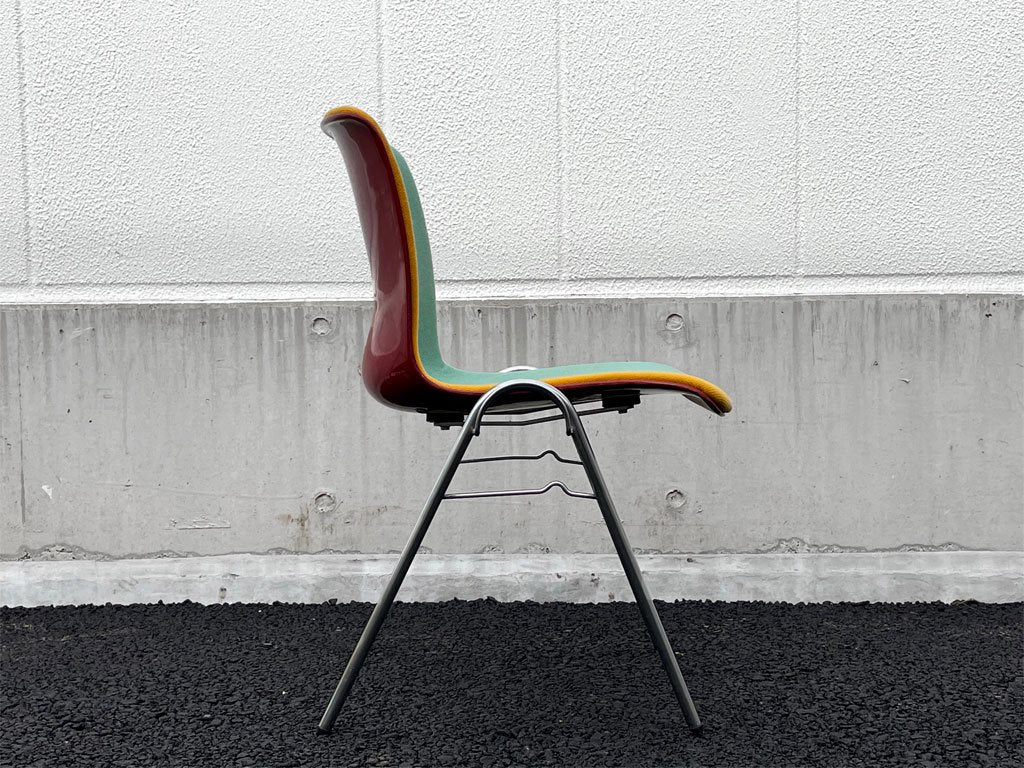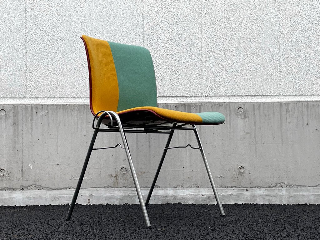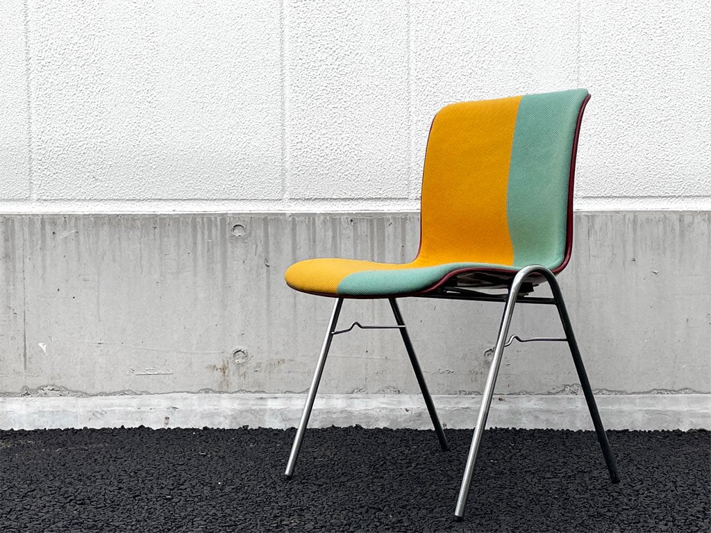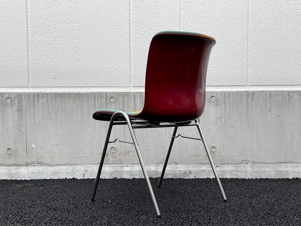 コトブキ KOTOBUKI 柳宗理 FRP サイドチェア 別注 レッドシェル イエロー×ライトグリーン Ribaco生地 スタッキングベース ミッドセンチュリー ビンテージ Lowタイプ ◇