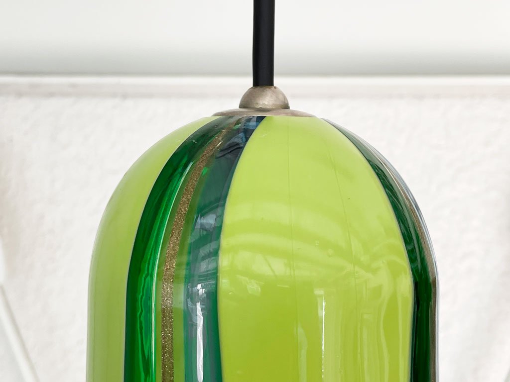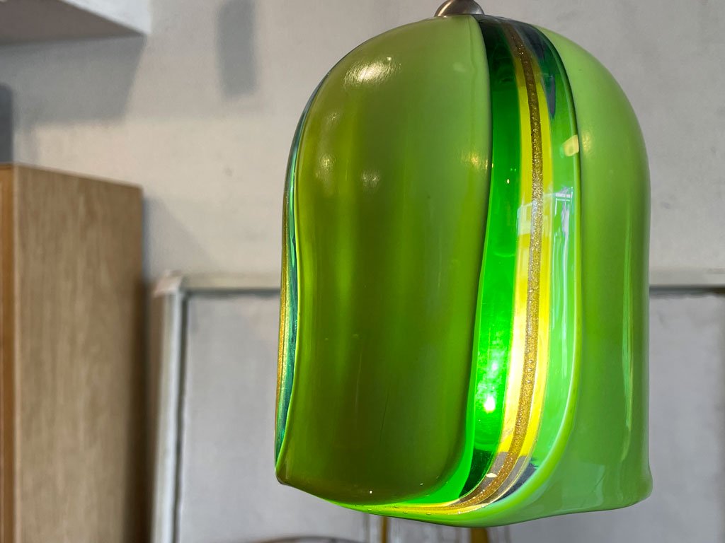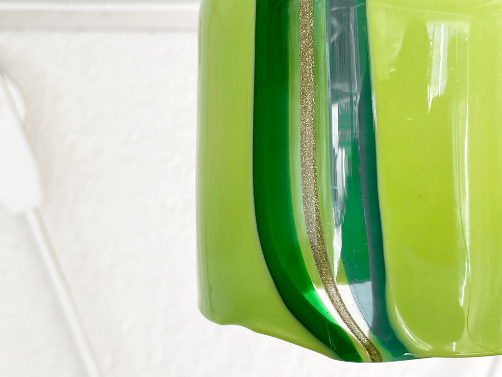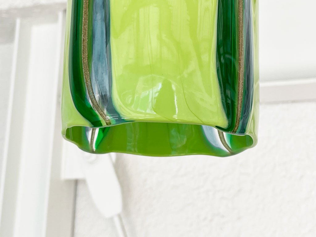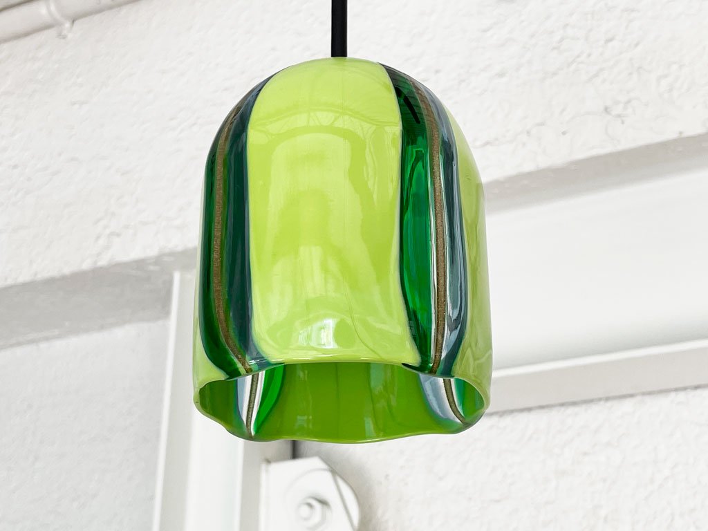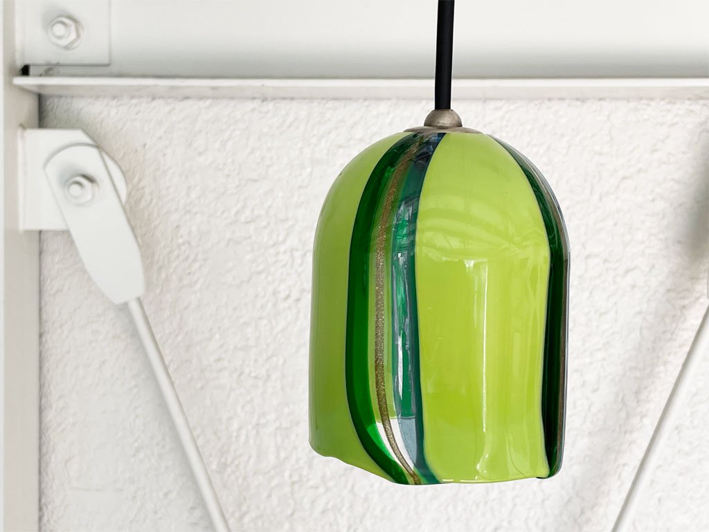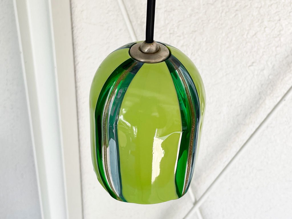 シェードは本場イタリアにてひとつひとつ手作業で仕上げられたムラーノガラス製。厚みのある色彩豊かな色ガラスを組み合わせた芸術作品のような1点です。