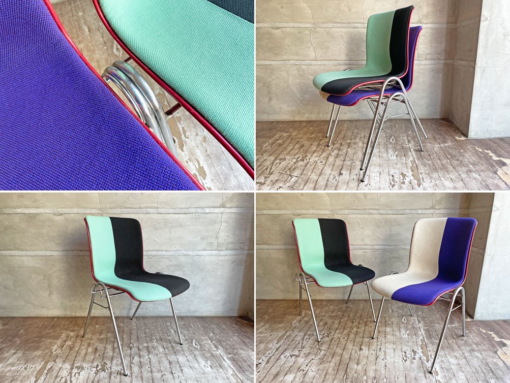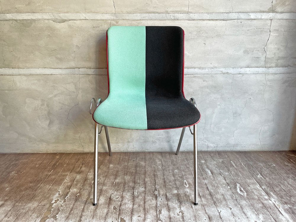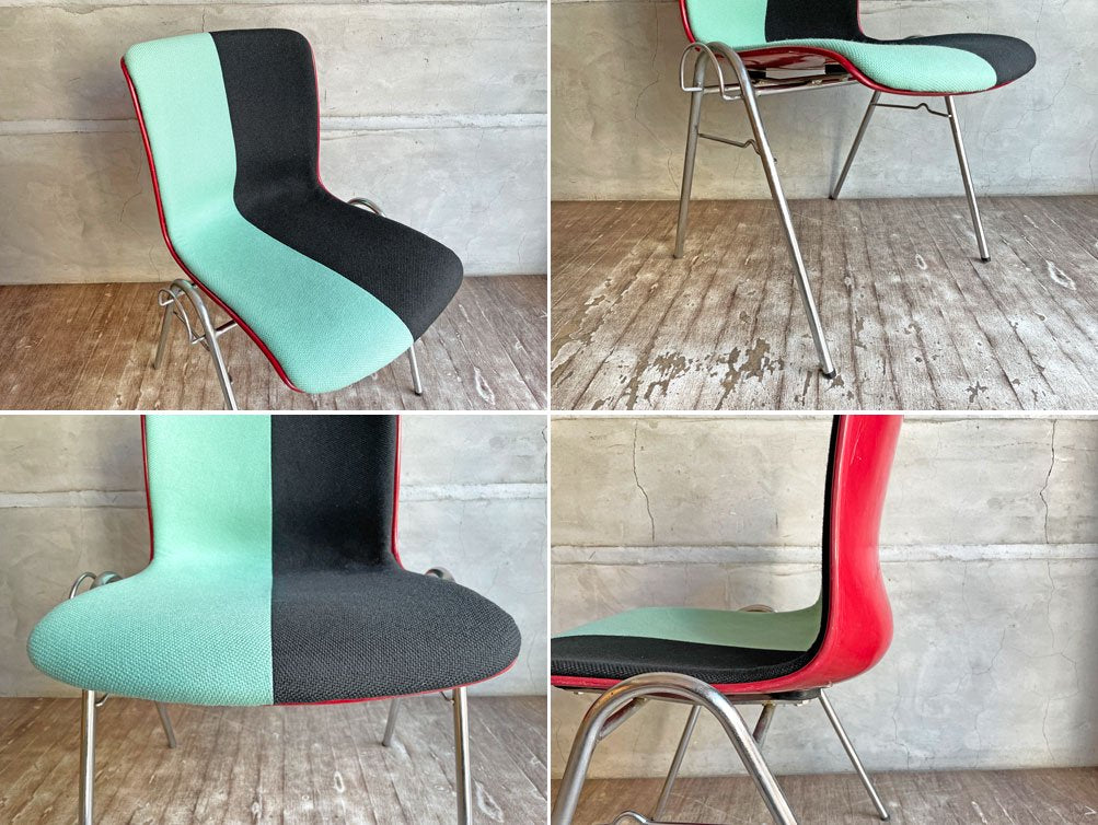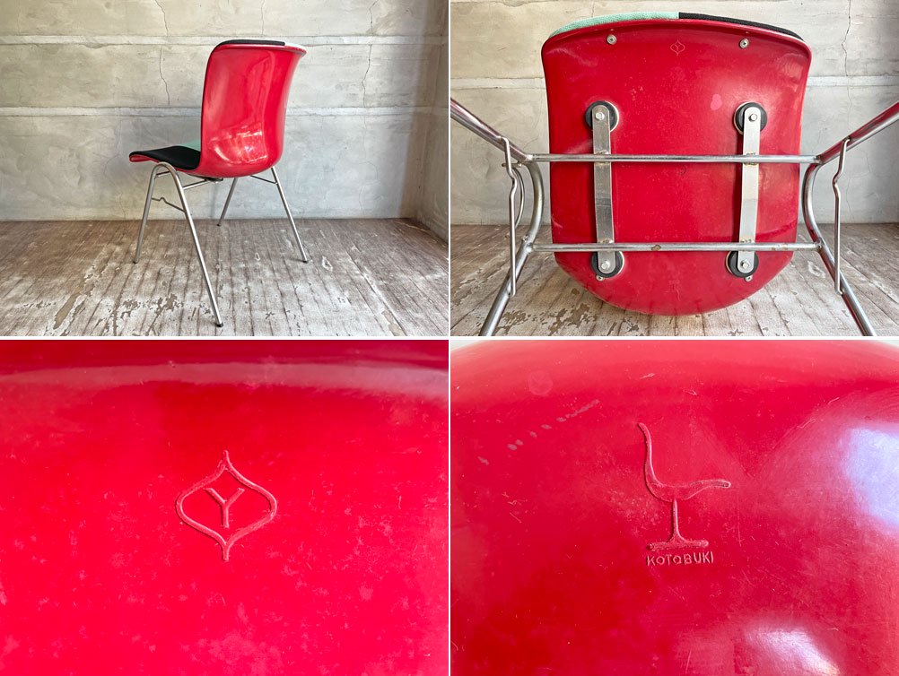 コトブキ KOTOBUKI サイドチェア FRP レッドシェル スタッキングベース 柳宗理 Ribaco/NC生地 ファブリック張替品 ミント×ブラック Lowタイプ♪