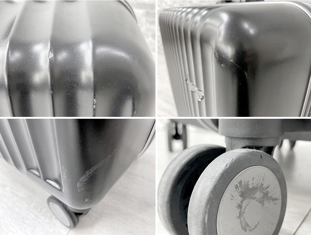 各所に擦り傷が見受けられ、タイヤのゴムには若干のベトつきが生じております。現状は使用に問題ございませんが、経年による加水分解と思われますので、アスファルト等で長時間転がすと次第に割れてくる可能性がございます。
