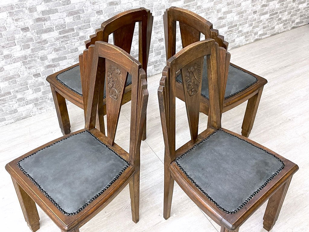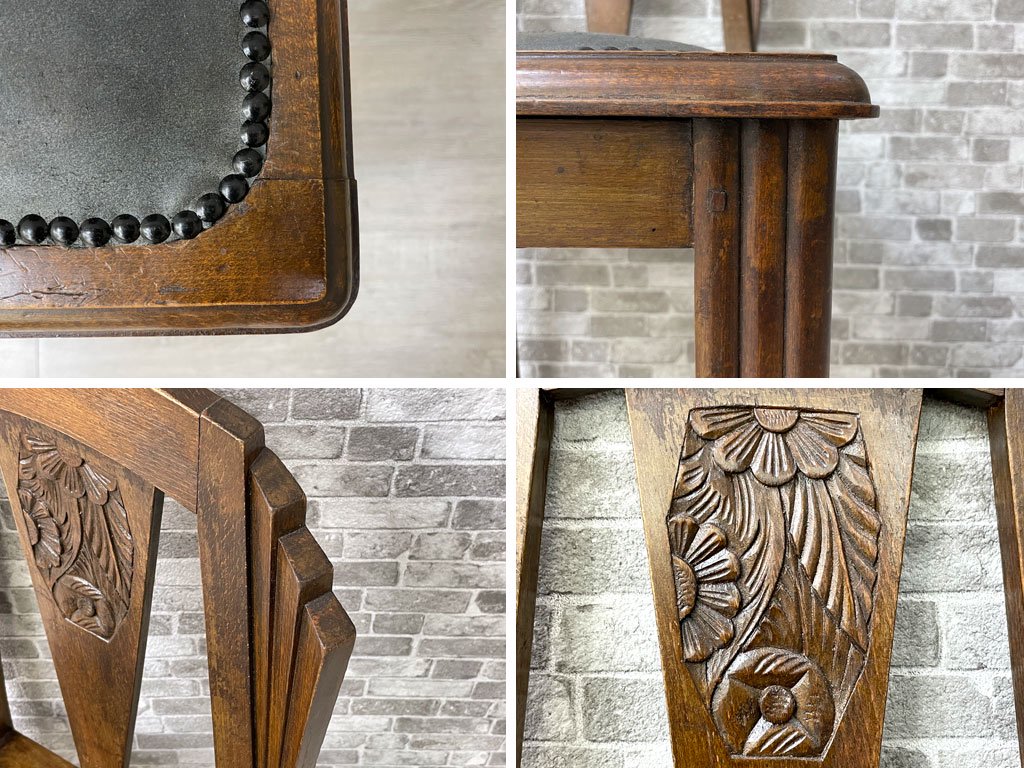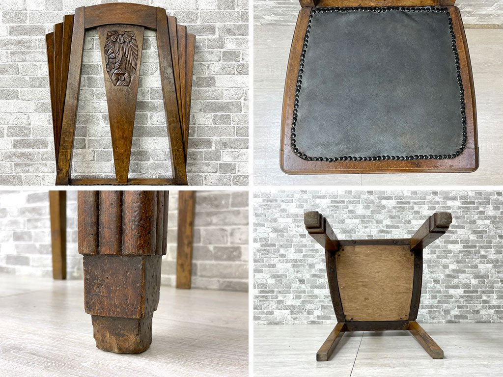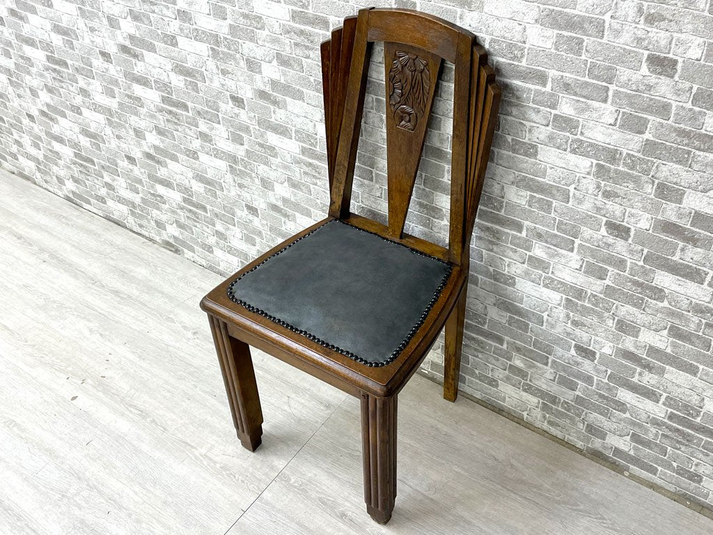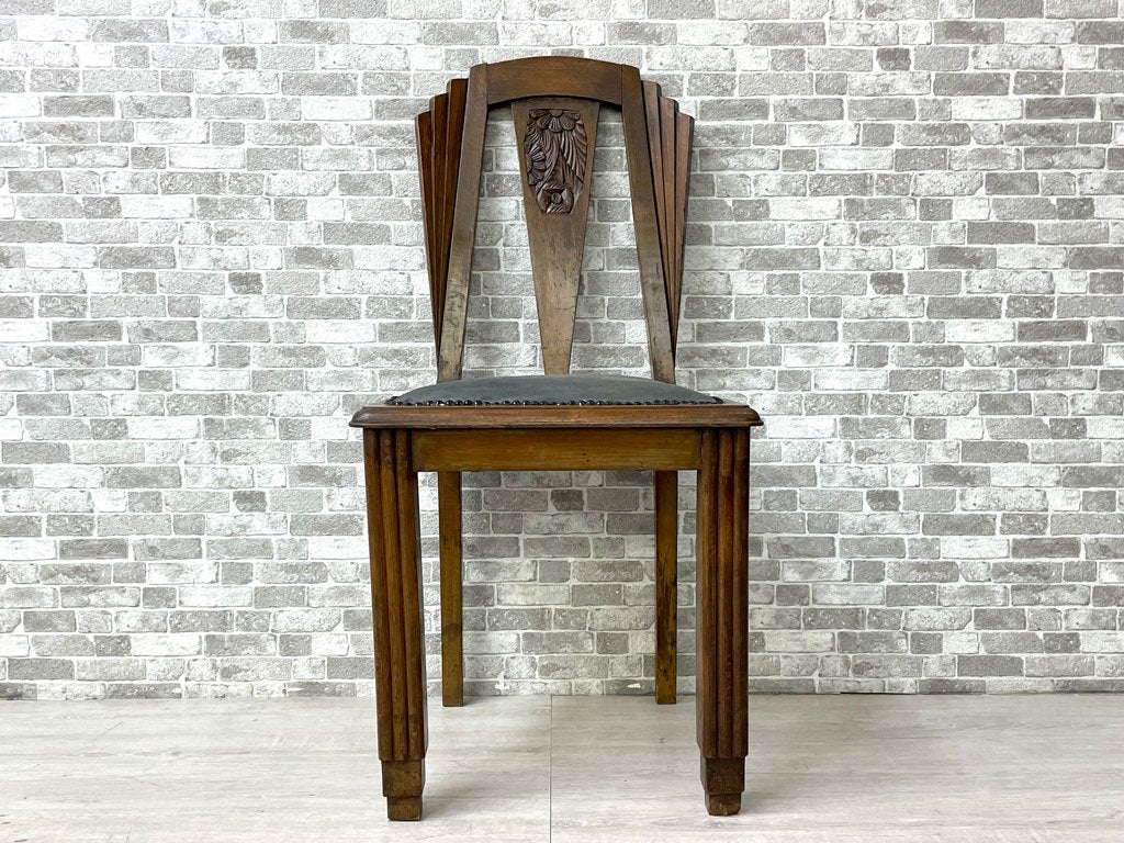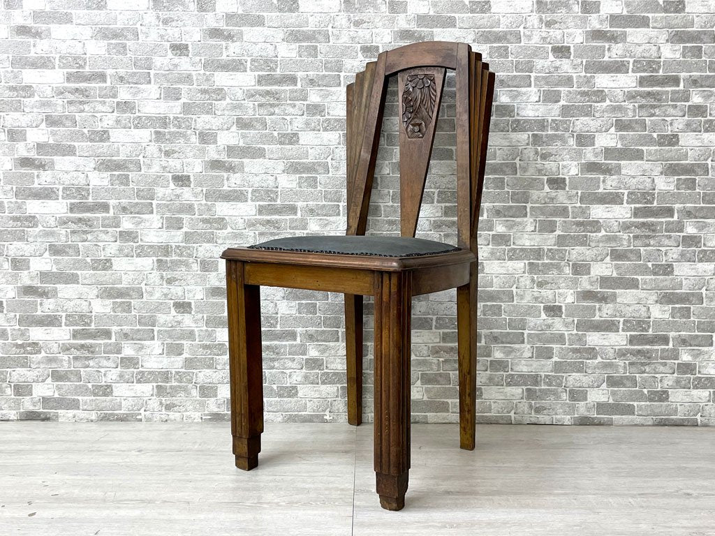 フランス ビンテージ ダイニングチェア オーク材 アールデコ ローレリーフ 椅子 C ●