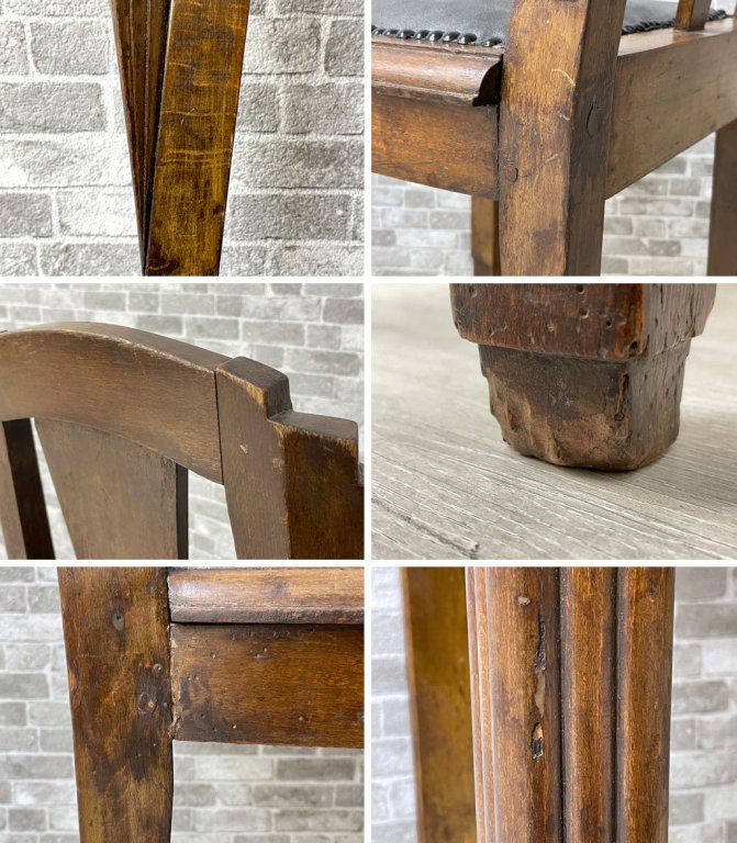 座面は当店入荷後に張替えを行っておりますが、落としきれない汚れや擦れによる色褪せ、毛羽立ち、微細な傷が数箇所見受けられますが、いずれも実使用に問題となるダメージでは無いかと思われます。