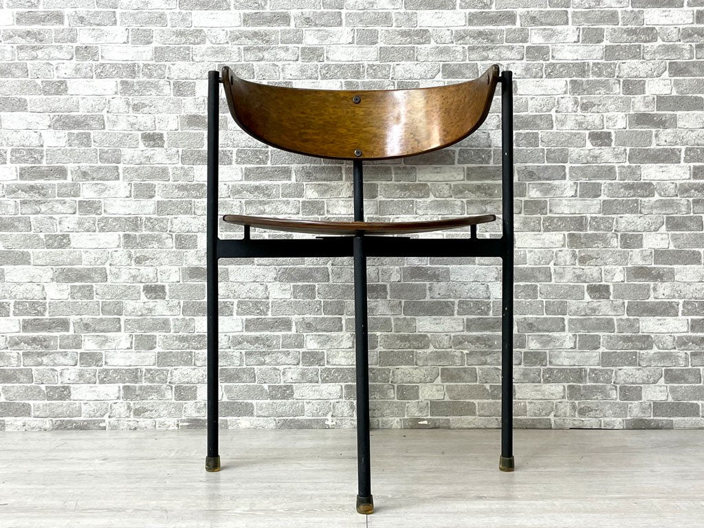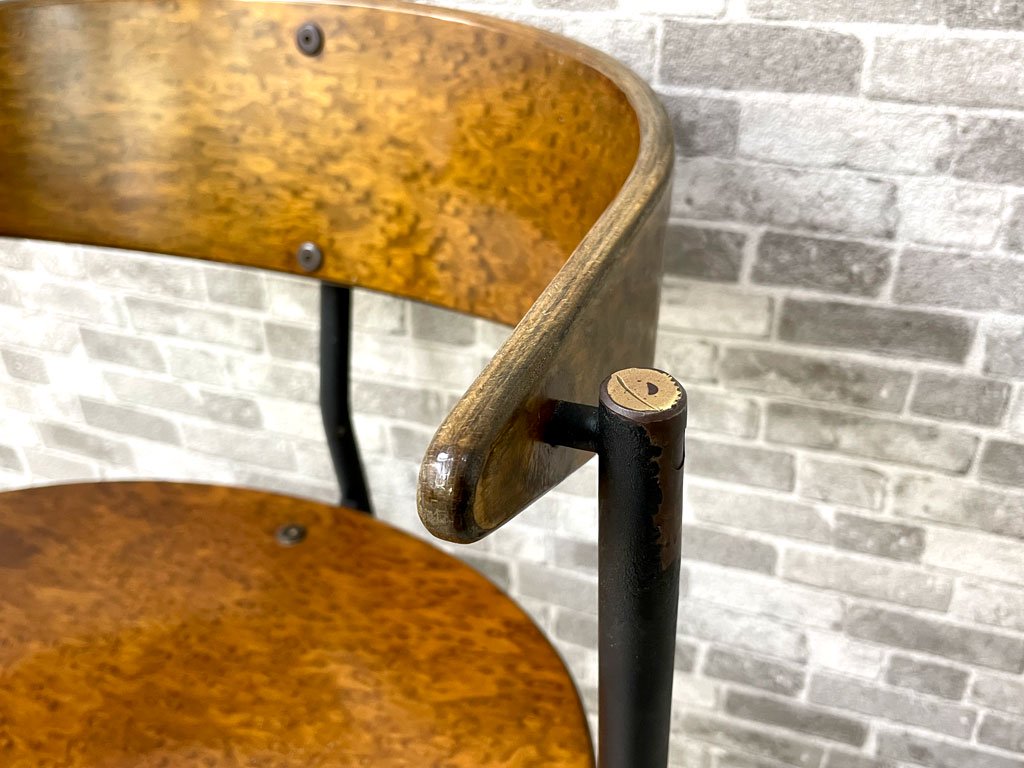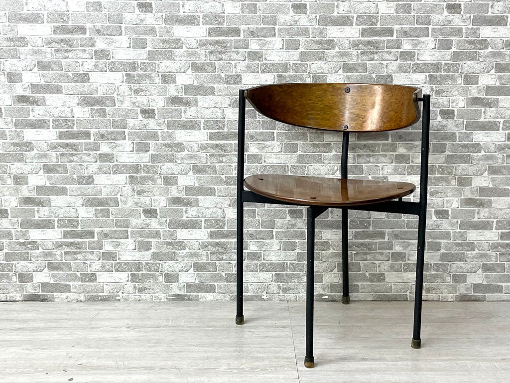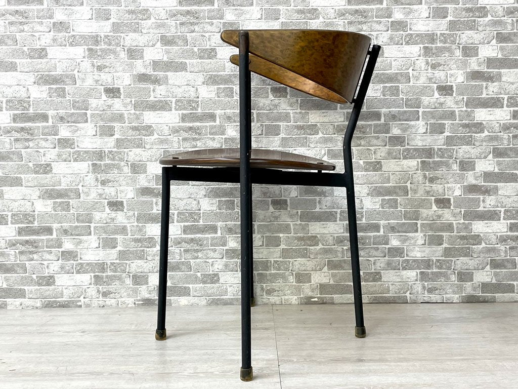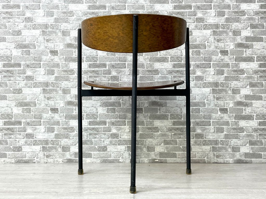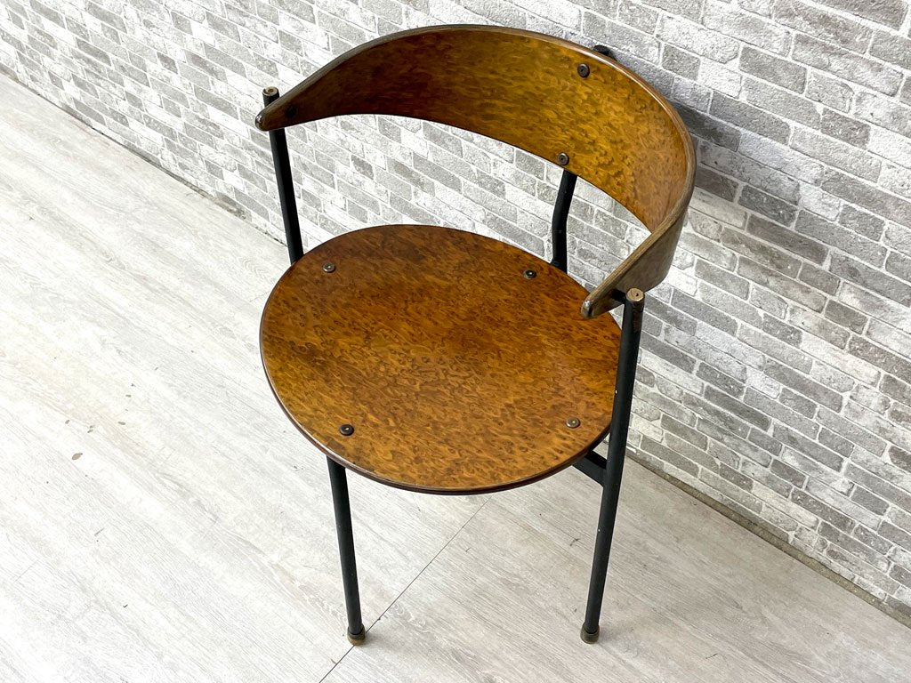 ミッドセンチュリー モダン スタイル ダイニングチェア 玉杢 アームチェア アイアンレッグ A ●