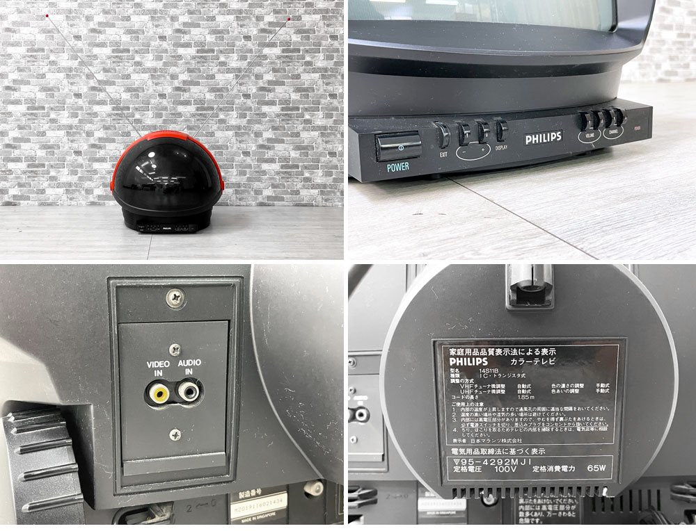 フィリップス PHILIPS ディスカバラー DISCOVERER TV カラーテレビ 14S11B 80年代ブラウン管テレビ アンテナ付 オレンジ スペースエイジ 希少 リモコン欠品 ●