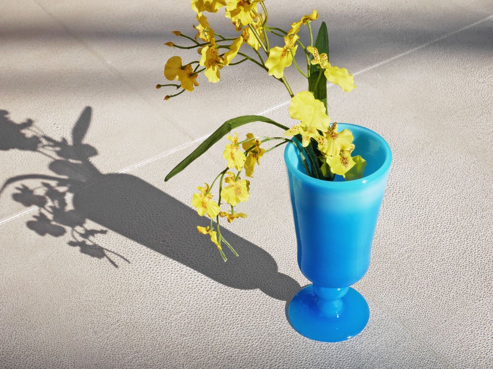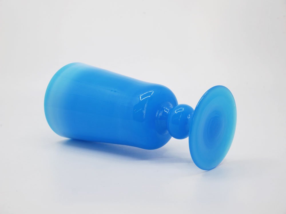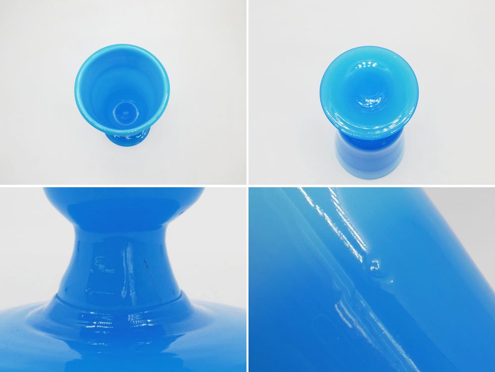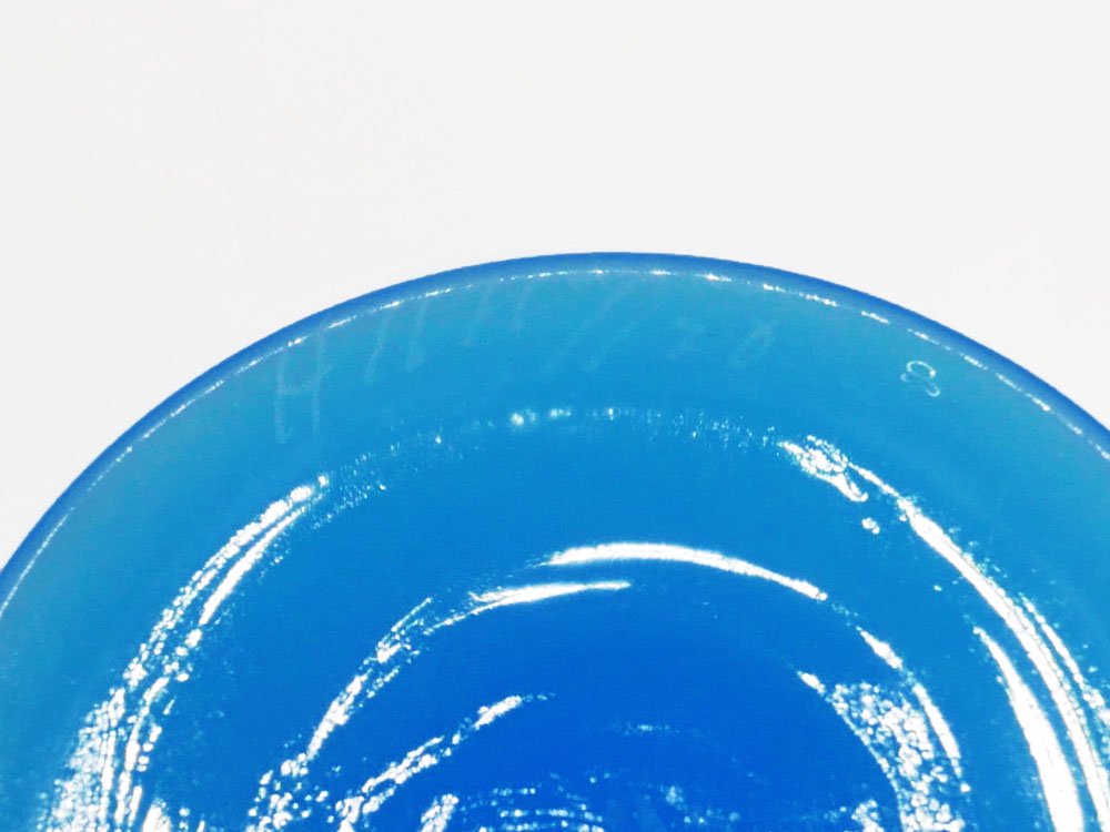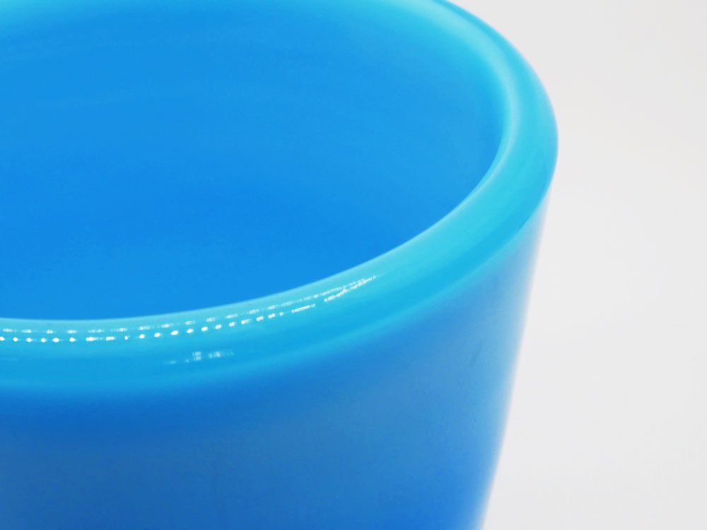 ホグランの象徴でもある気泡が入ったタイプとは異なり、ターコイズブルーのグラデーションと、ぽってりととろけるようなガラスの厚みが魅力的。