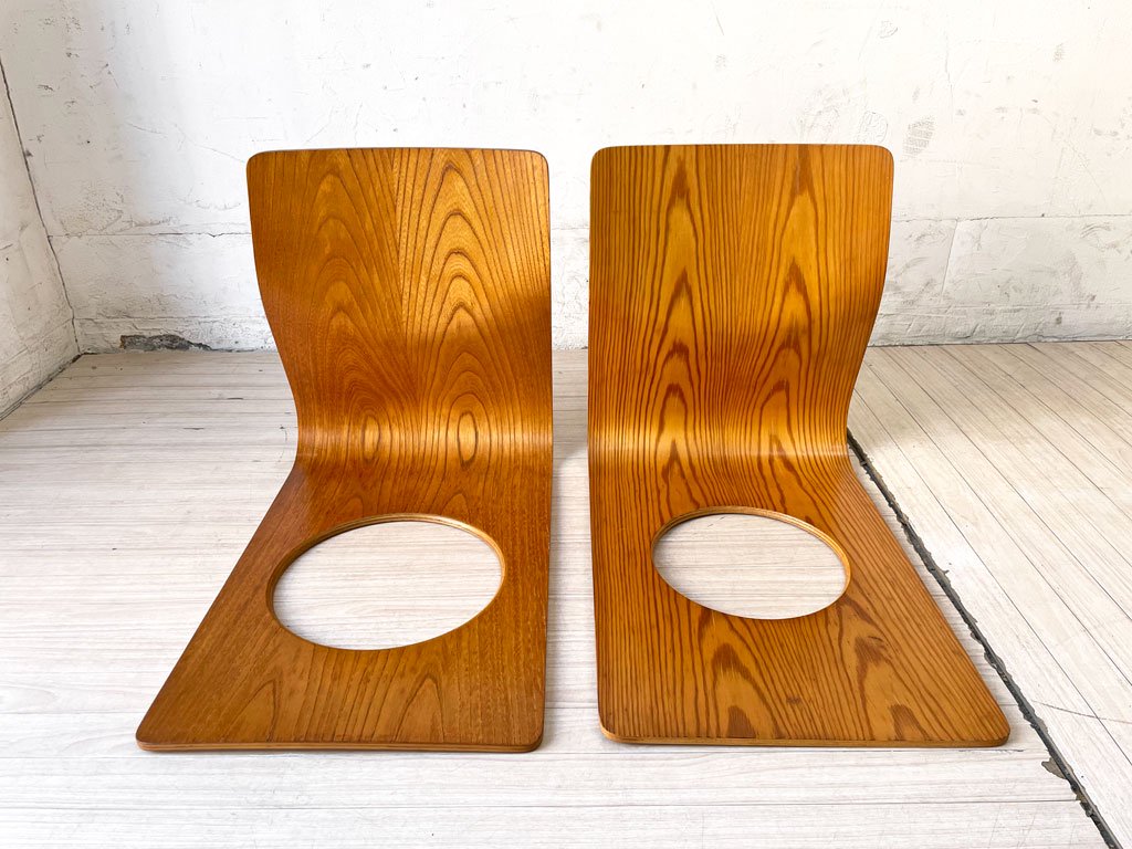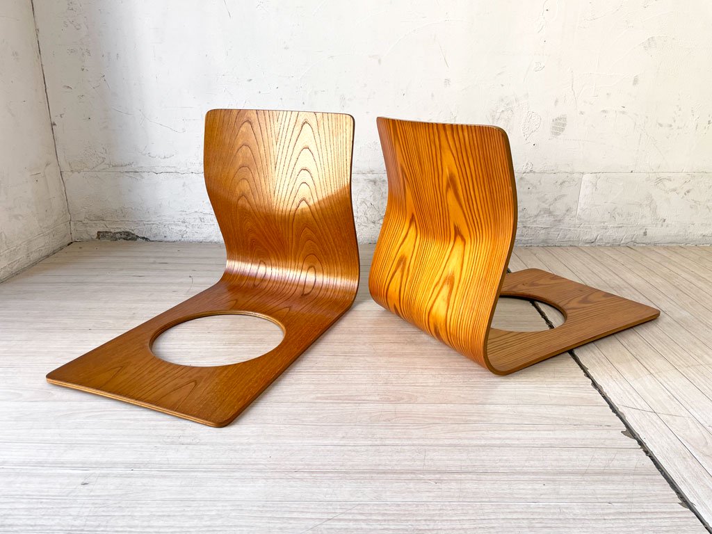 天童木工 TENDO 座椅子 ローチェア 2脚セット ケヤキ プライウッド 藤森健次 和モダン ビンテージ 現状品 A ★