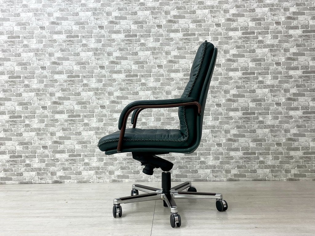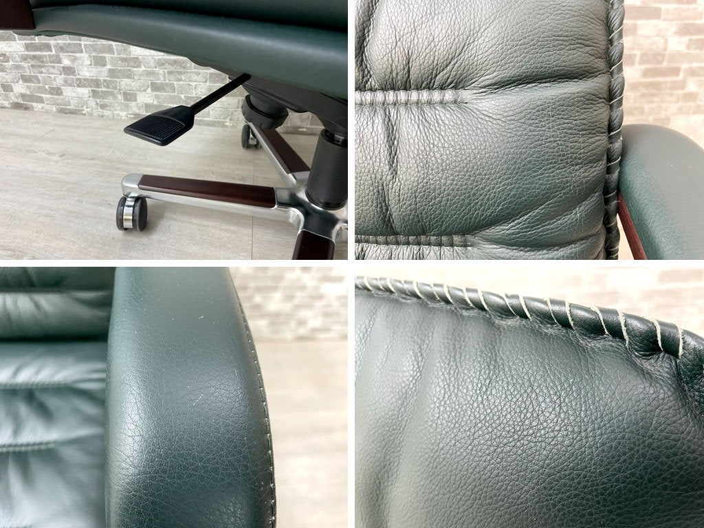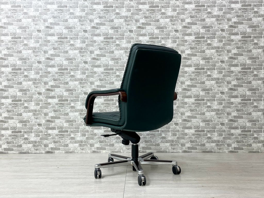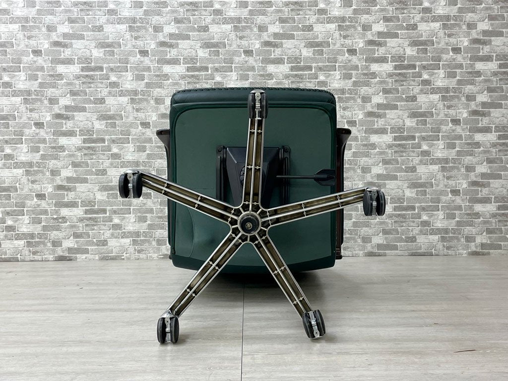 ベルグファニチャー Berg Furniture 89-11 キャスターチェア ローバック 手縫いステッチ 本革 ダークグリーン色 北欧 デンマーク 参考価格¥410,550~ 座面昇降不可 ●