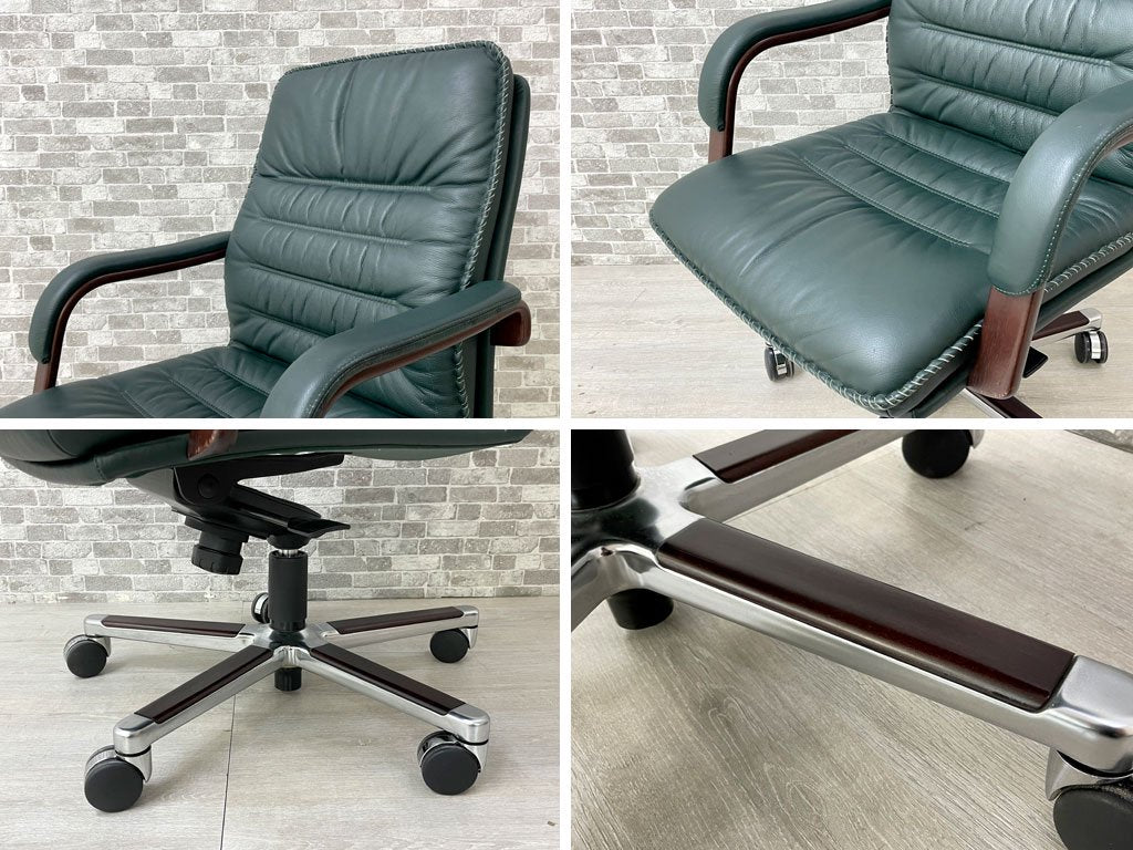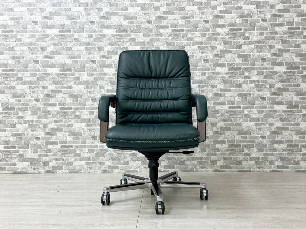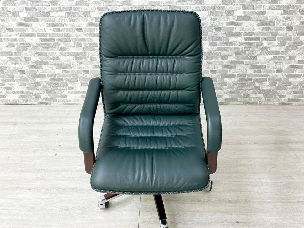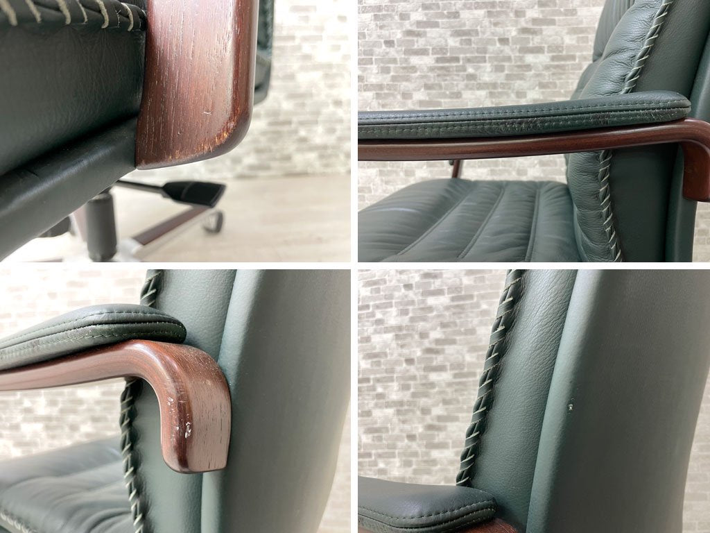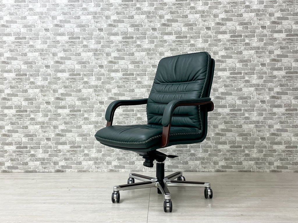 ベルグファニチャー Berg Furniture 89-11 キャスターチェア ローバック 手縫いステッチ 本革 ダークグリーン色 北欧 デンマーク 参考価格¥410,550~ 座面昇降不可 ●