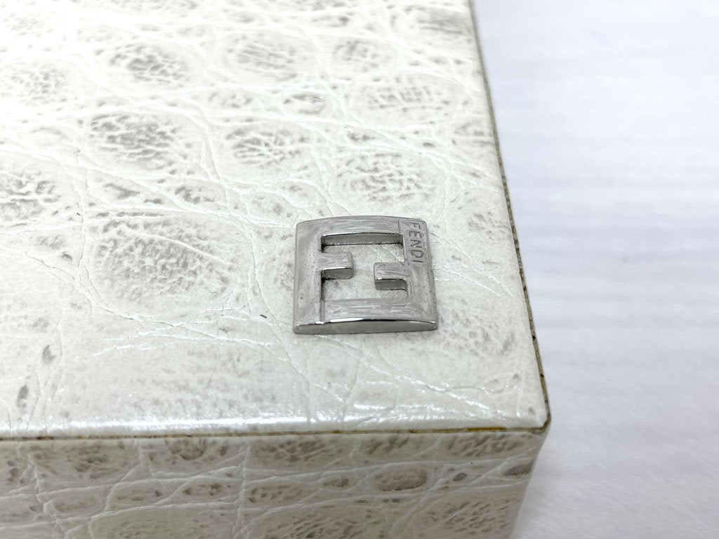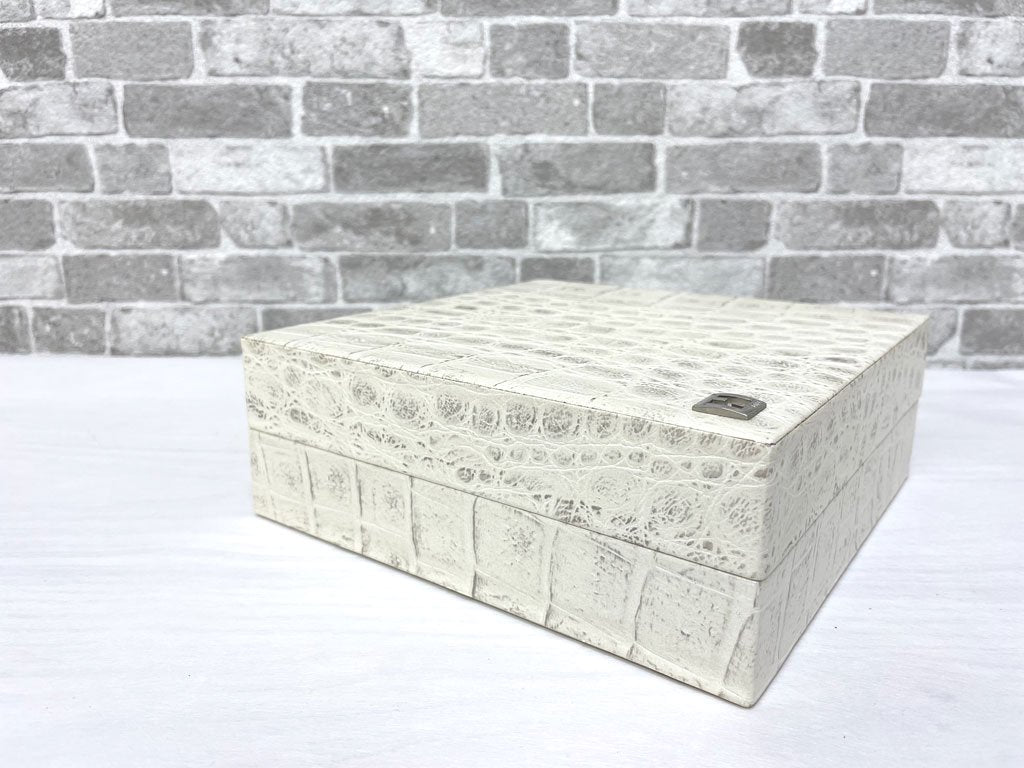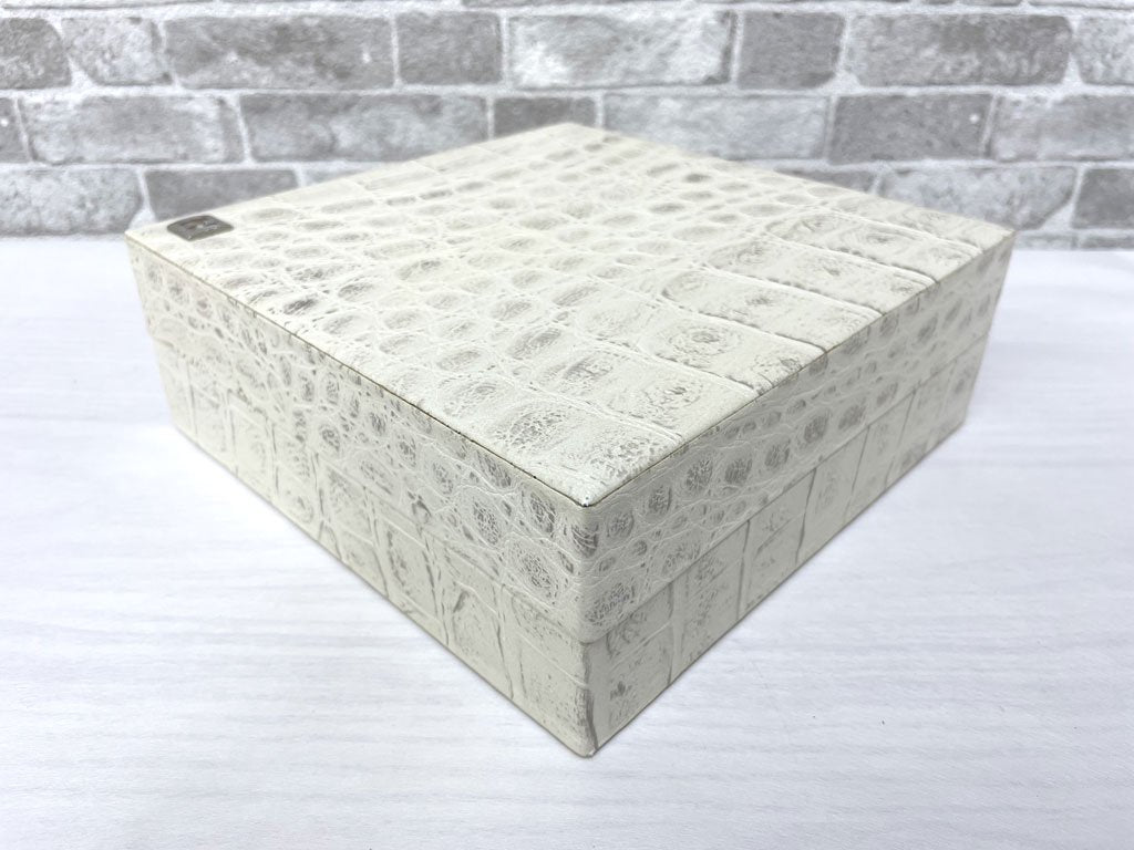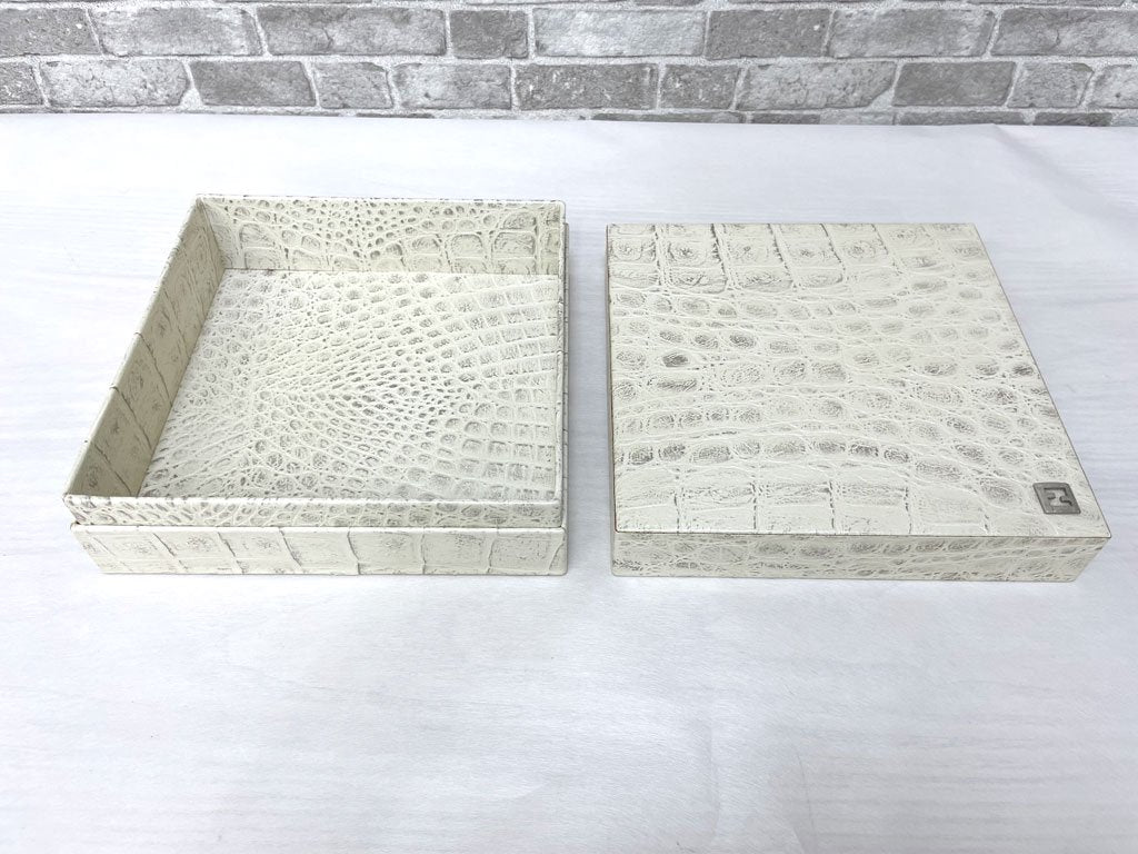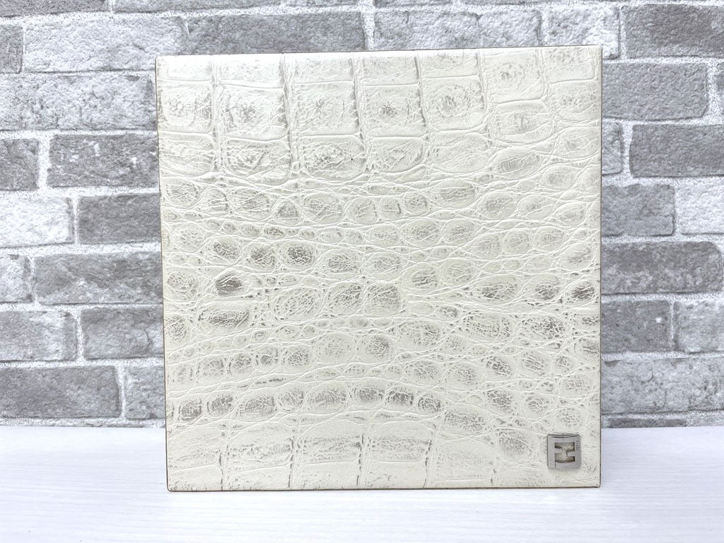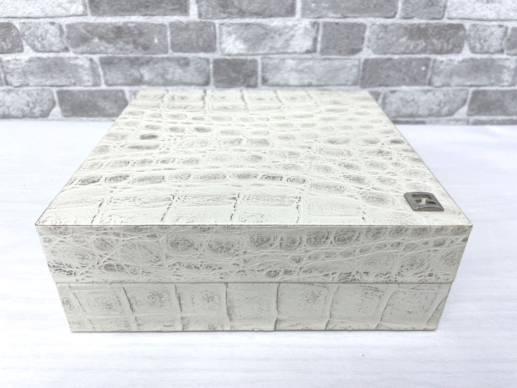 フェンディカーサ FENDI CASA クロコ型押し 牛革 ボックス 小物入れ 蓋付き箱 W20cm 高級 イタリアモダン ●