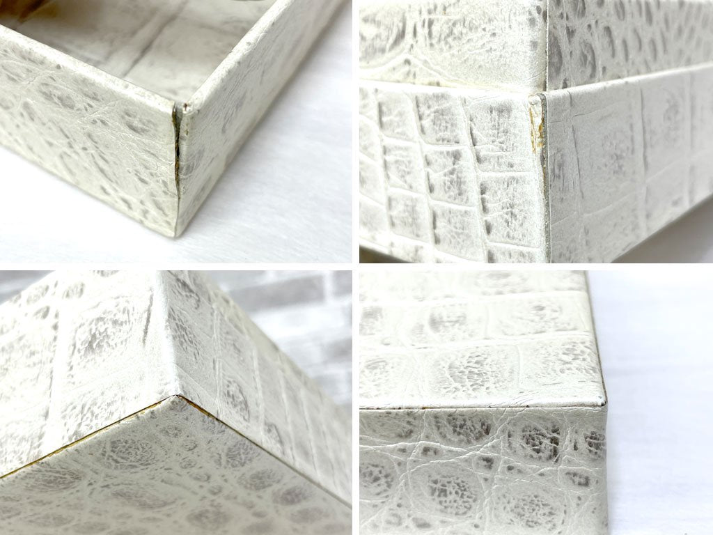 クロコ型押し 牛革 ボックス 小物入れ 蓋付き箱