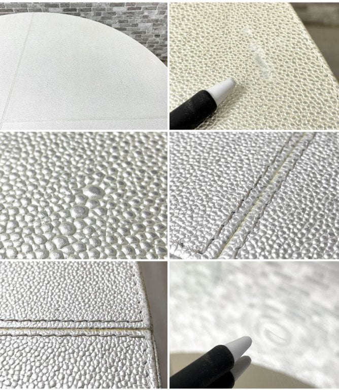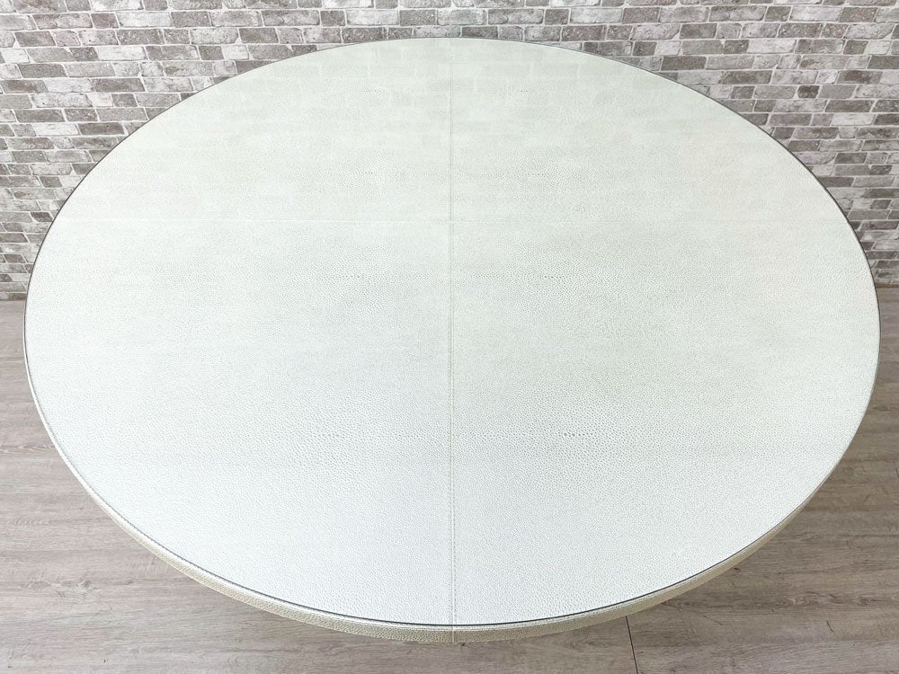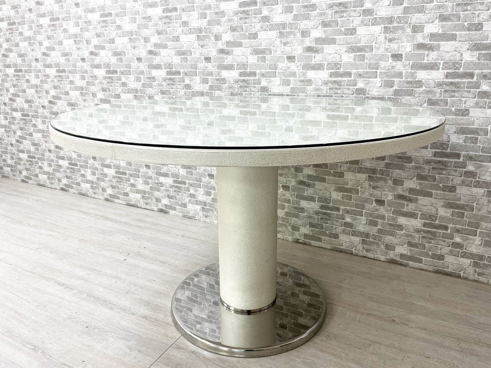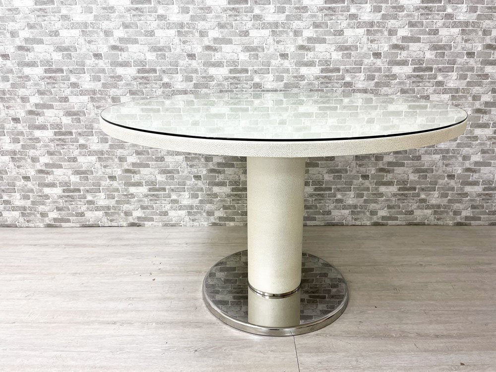 型押し 牛革 特注ガラス天板 ラウンド ダイニングテーブル