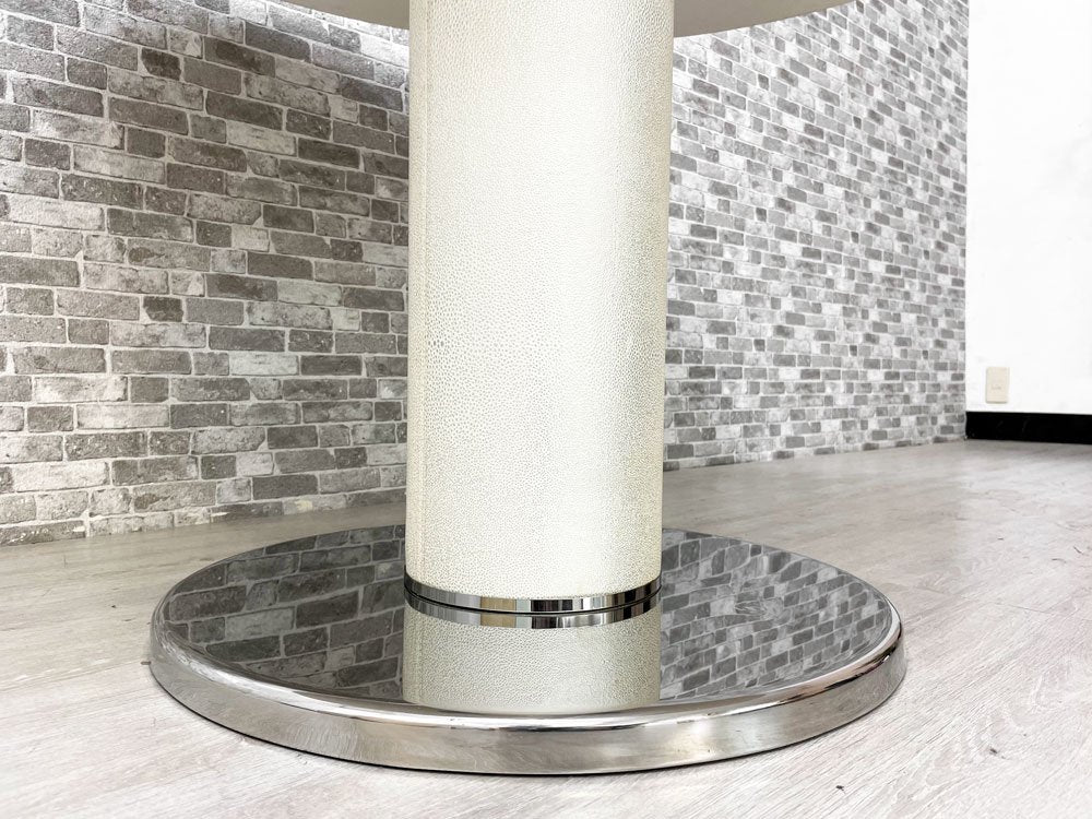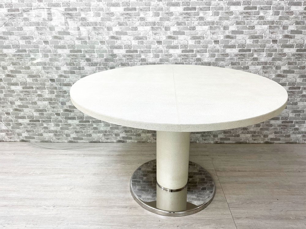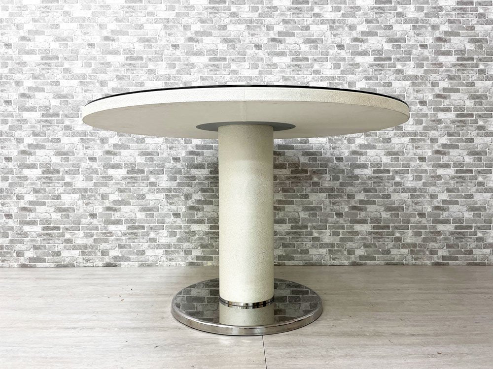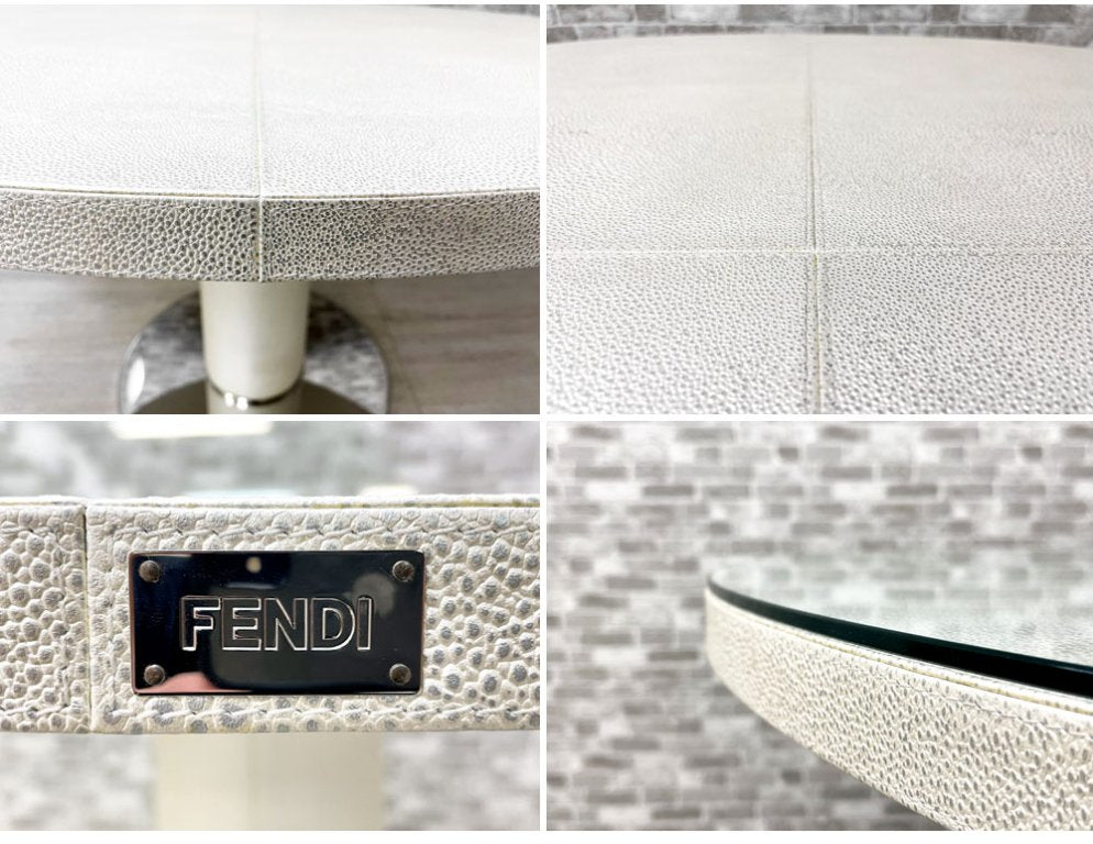 フェンディカーサ FENDI CASA 型押し 牛革 特注ガラス天板 ラウンド ダイニングテーブル Φ120cm 高級家具 イタリアモダン ●
