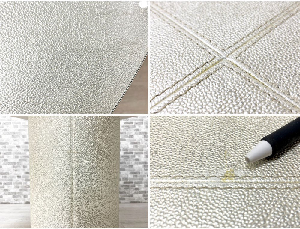 また、天板のレザーは経年による僅かな色合いの変化と、ガラスとの癒着による表面の剥がれや軽微な染みが見受けられます。