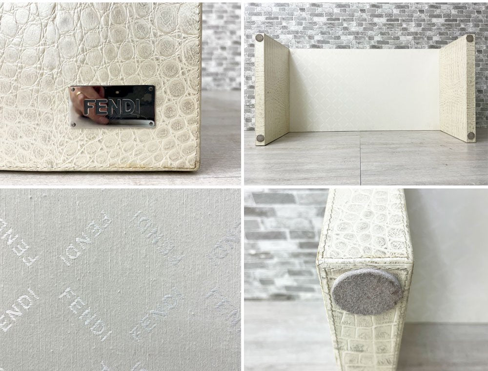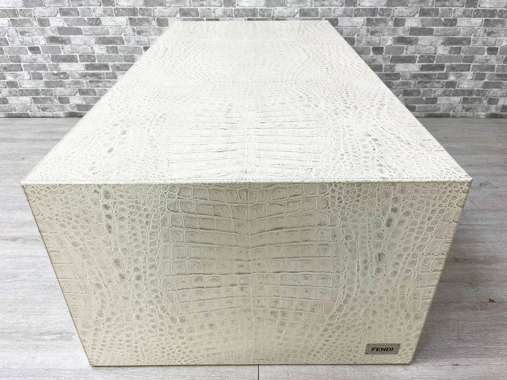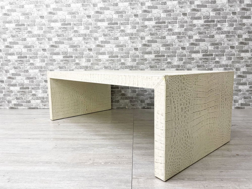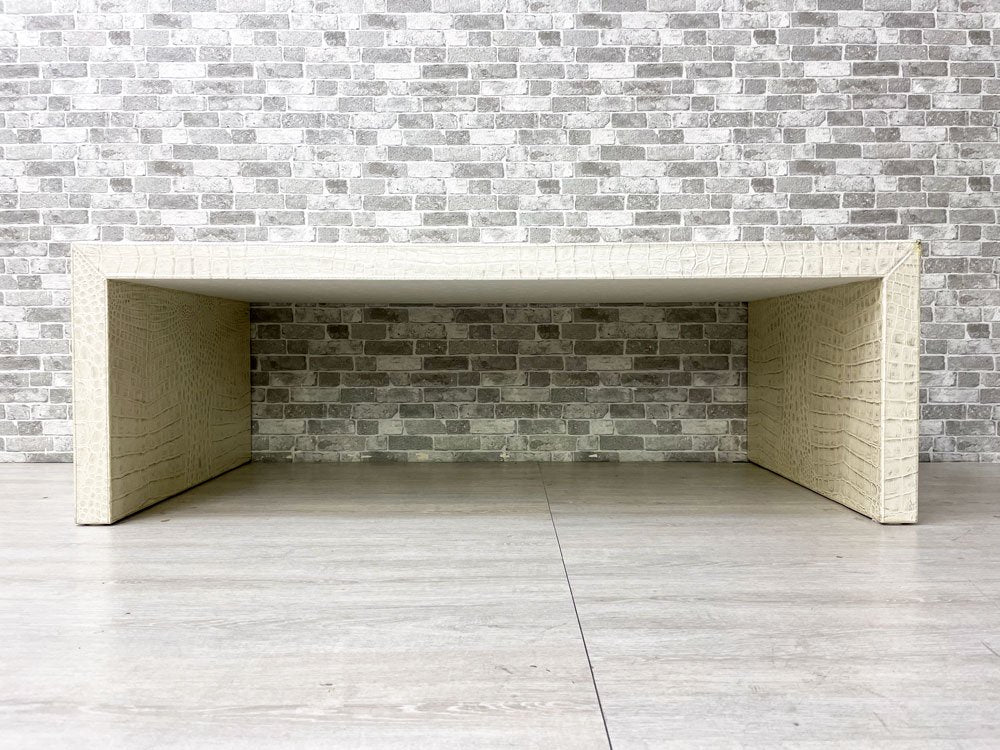 フェンディカーサ FENDI CASA クロコ型押し 牛革 コーヒーテーブル ローテーブル W120cm コの字 高級家具 イタリアモダン ●