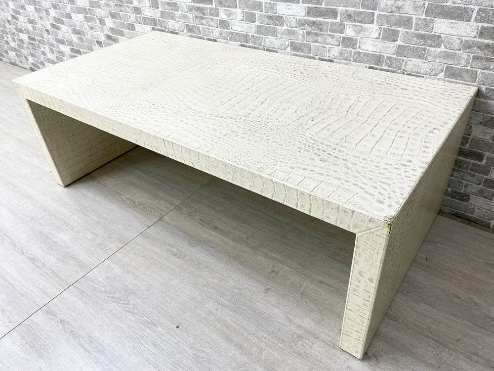 クロコ型押し 牛革 コーヒーテーブル ローテーブル