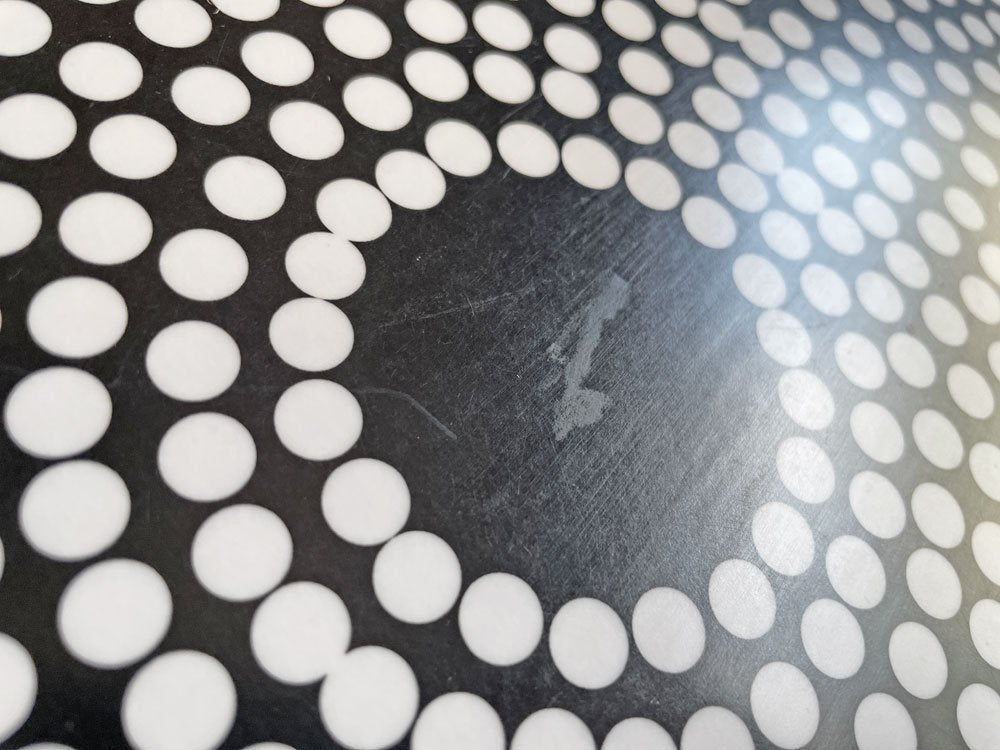 ドットをランダムに配置した柄が印象的な「Fokus」は、日本語で焦点を意味し、中心に向かって収束していくアーティスティックなパターン。