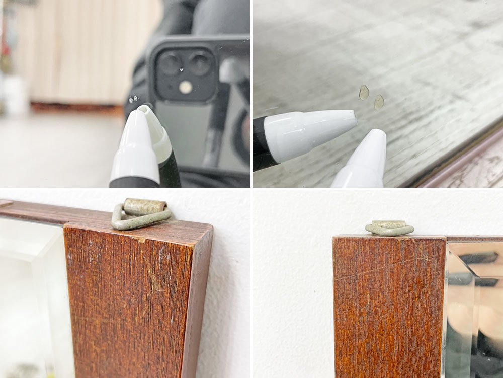 使用に伴い、ミラー部分には微細な線傷や打痕、落としきれない汚れや付着物が僅かに散見されます。