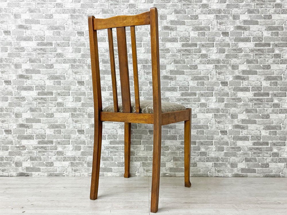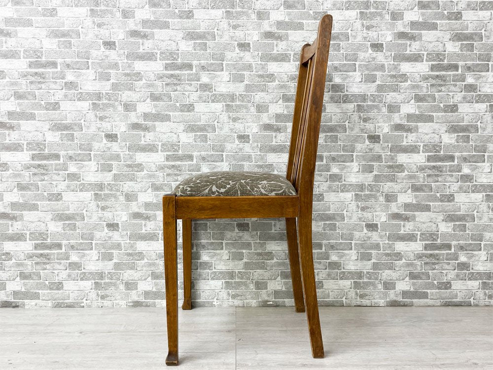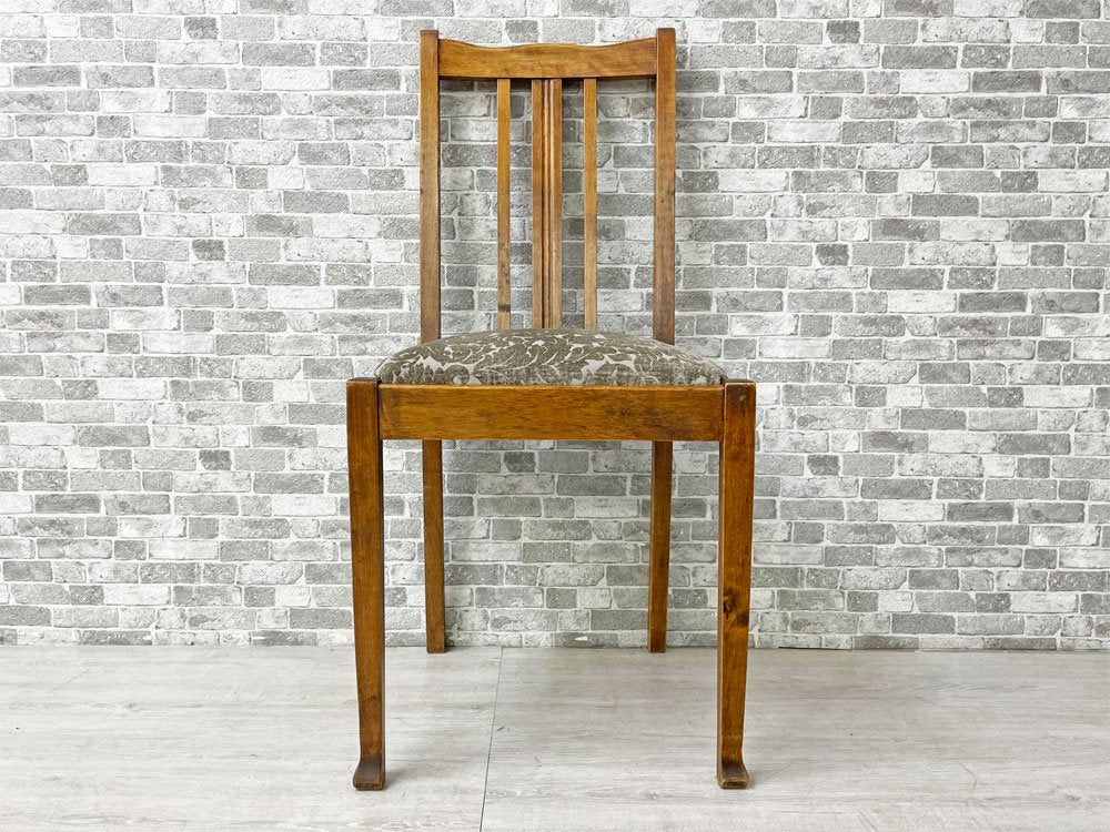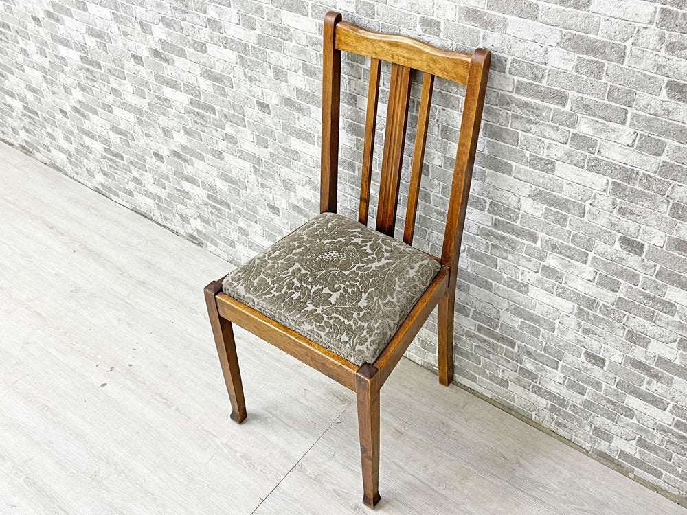 UKビンテージ Vintage ダイニングチェア 無垢材フレーム モケットシート ボタニカル柄 英国アンティーク D ●