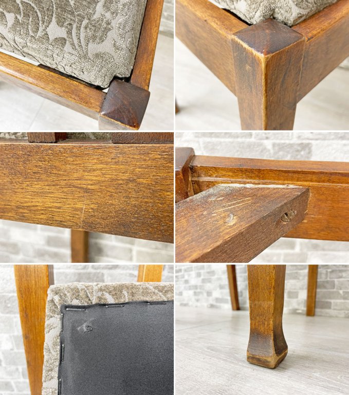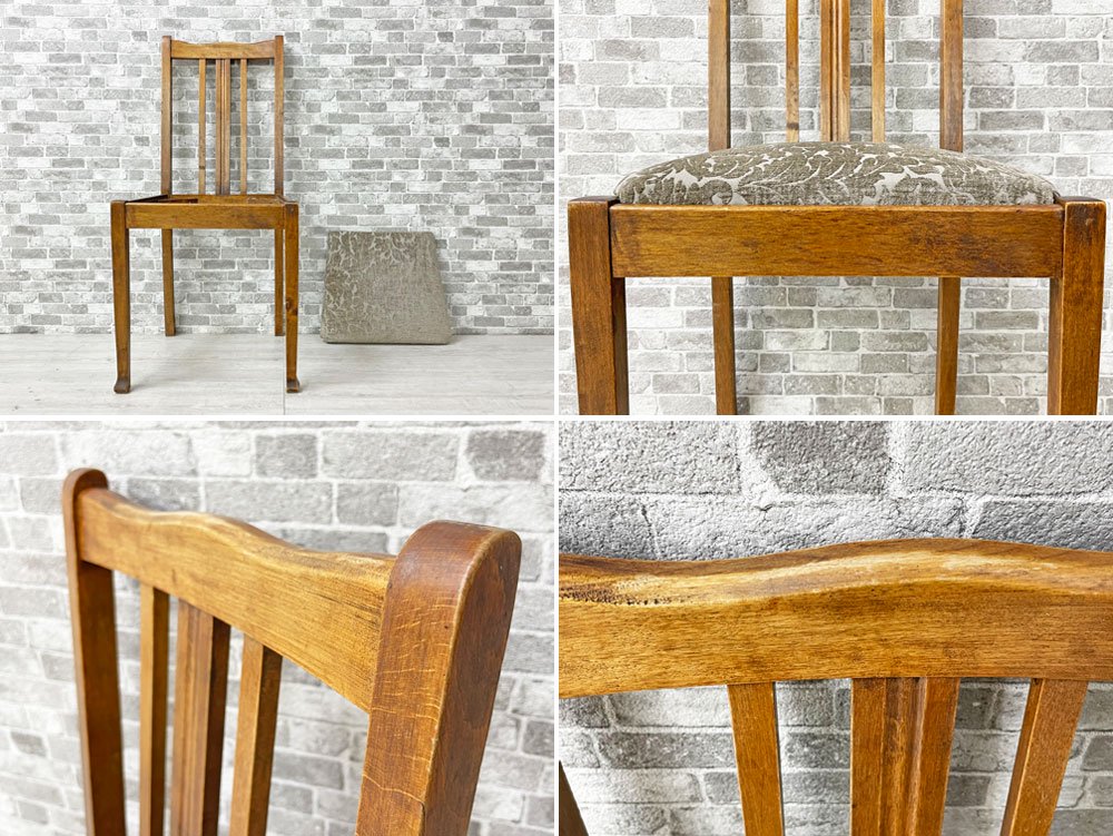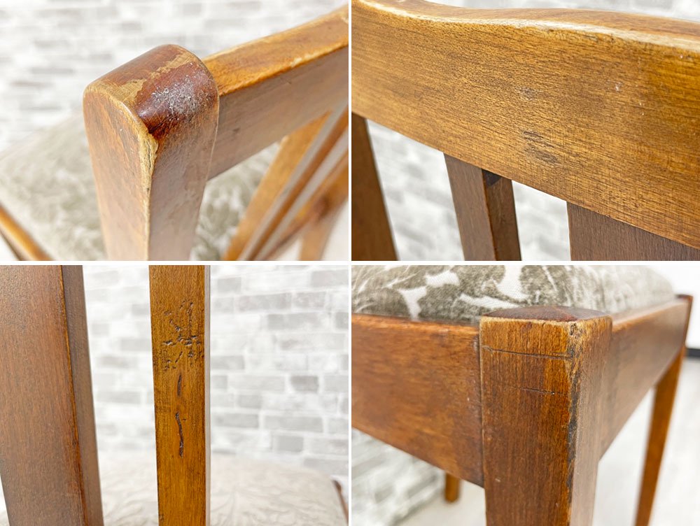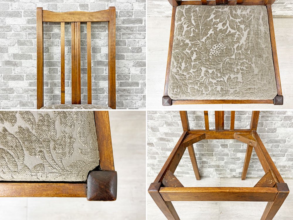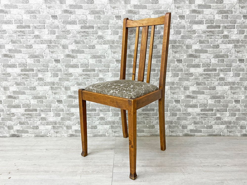 UKビンテージ Vintage ダイニングチェア 無垢材フレーム モケットシート ボタニカル柄 英国アンティーク D ●