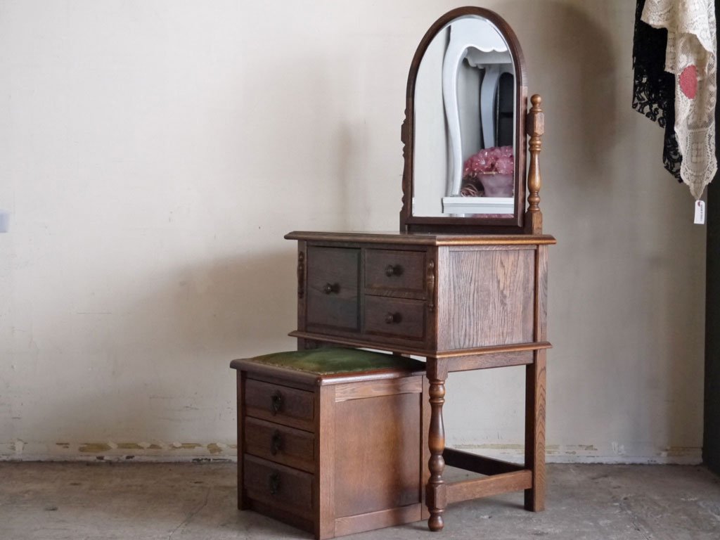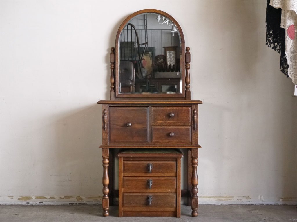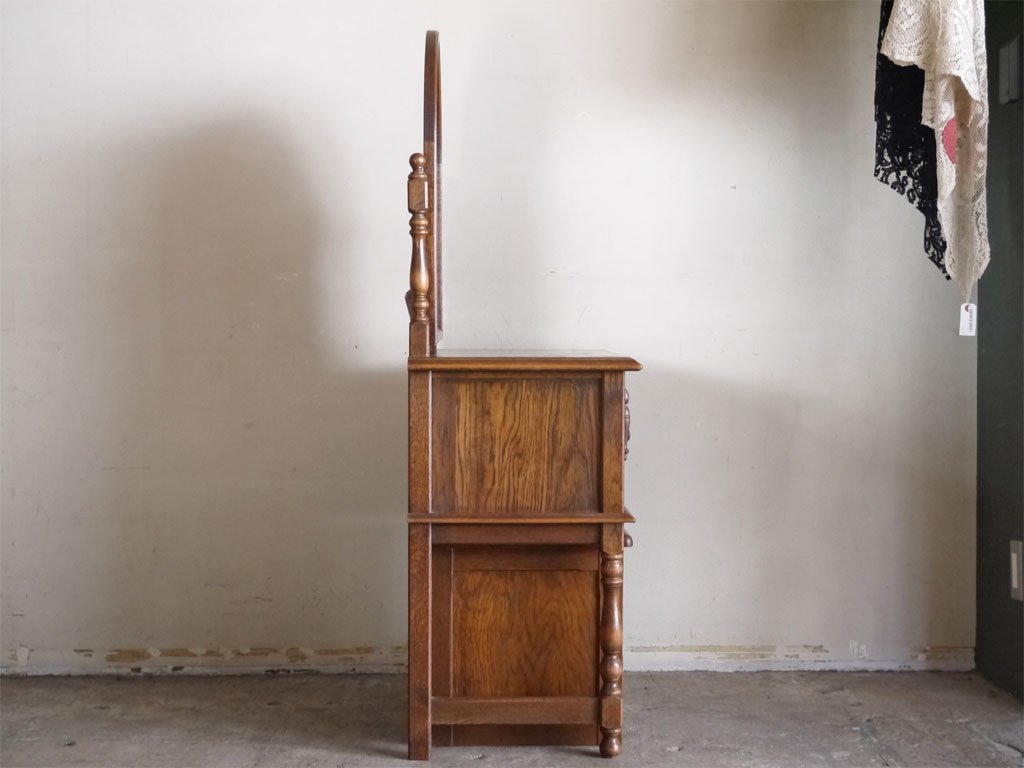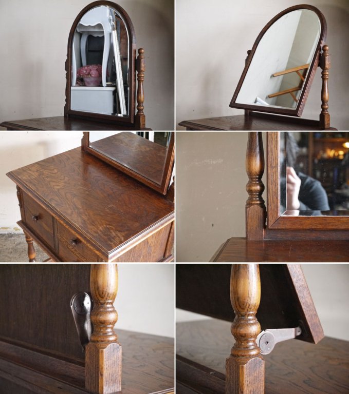 ミラーの可動を支える金具や確りと組まれた抽斗等、至る箇所に強い拘りと気品を感じさせてくれる逸品に仕上げられています。