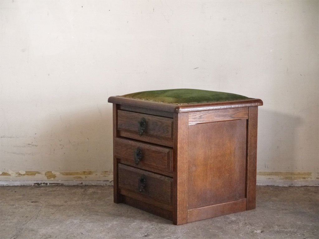 使用に伴い、傷や擦れ、軽微な打痕、ペイントロス、ミラー部にくすみ、ファブリックに色褪せと擦れ、抽斗内部に落としきれない汚れが見受けられますが、ビンテージアイテム同様に経年による風合いを楽しんで頂けるかと思います。