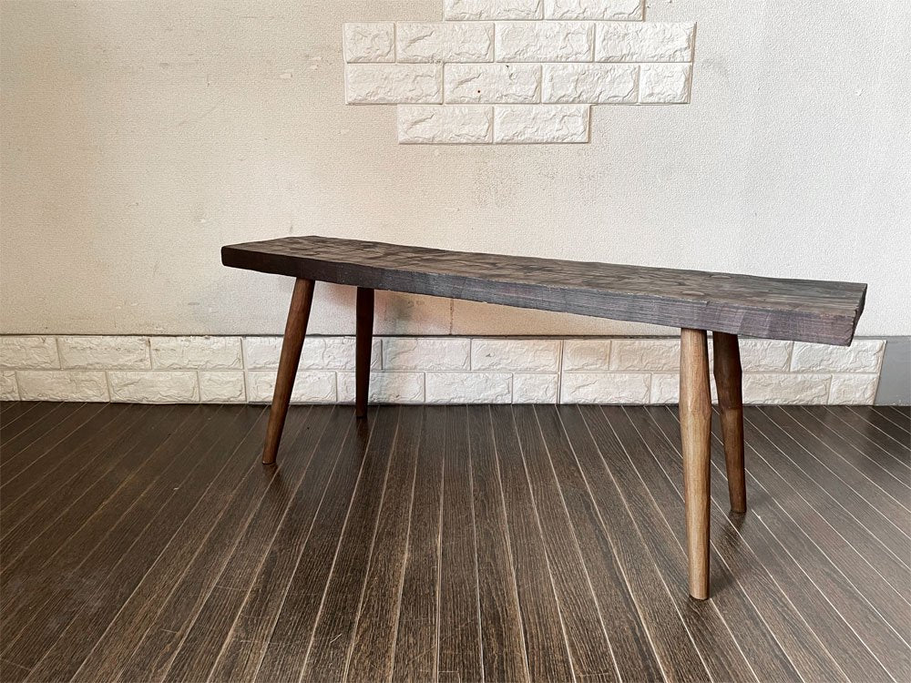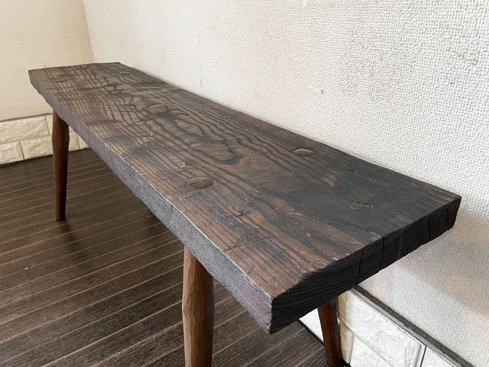 釘を使わず割りくさびという木の楔で仕上げられた意匠を感じられるベンチ。ビンテージのような木味がインテリアに溶け込みながら存在感を放ちます。