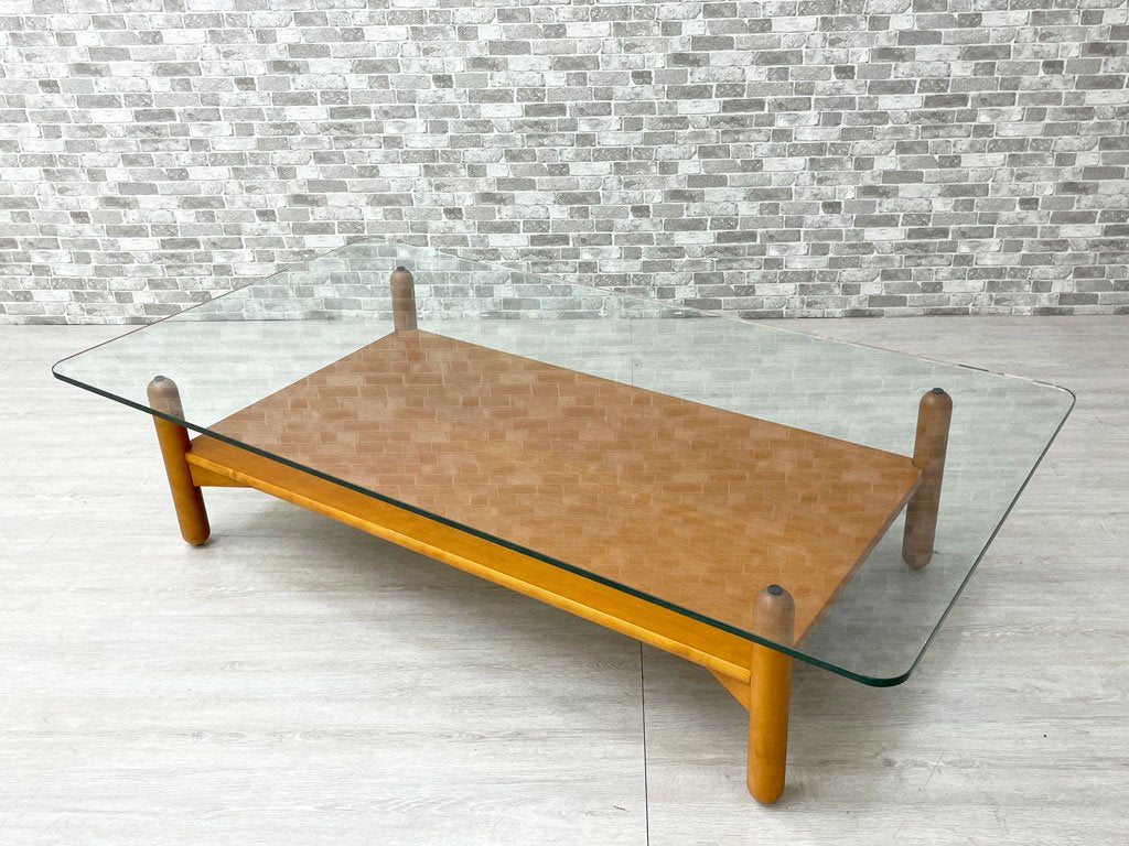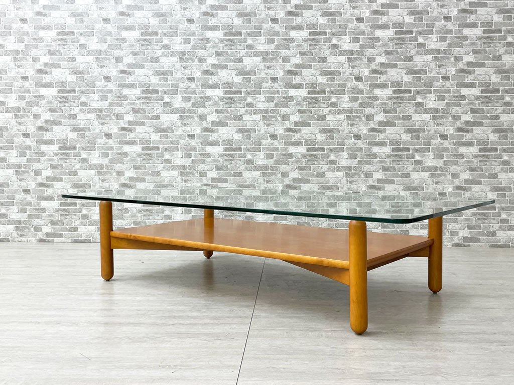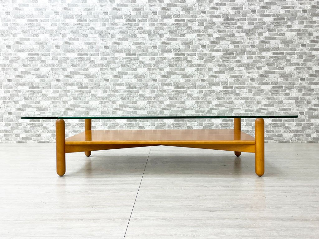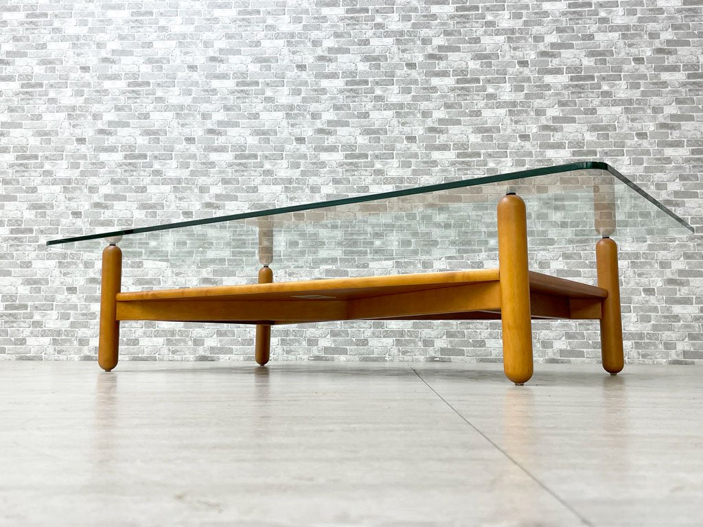 アルフレックス arflex ガット GATTO ローテーブル リビングテーブル ガラス天板 バーチ材 W150cm イタリア ミニマル モダン 廃番 ●