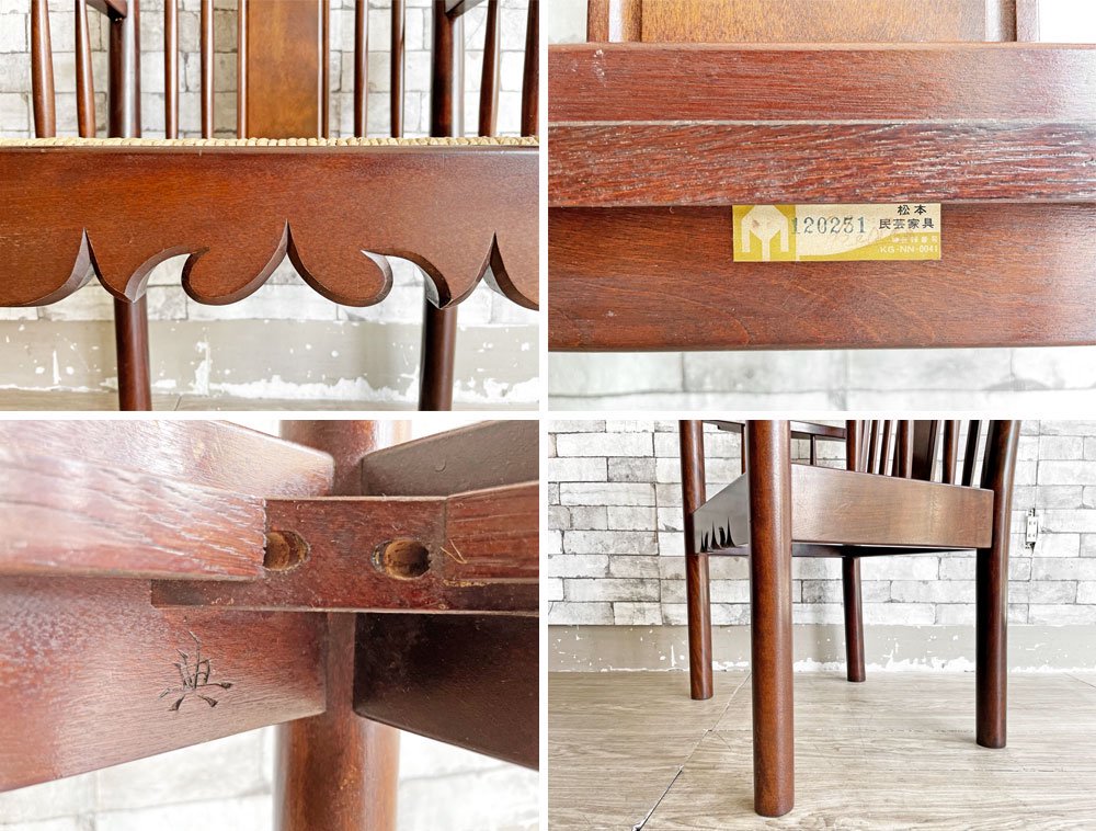 松本民芸家具 HB型 ラッシアームチェア ダイニングチェア ミズメザクラ 刻印有 民藝 和家具 参考定価\198,000- ●