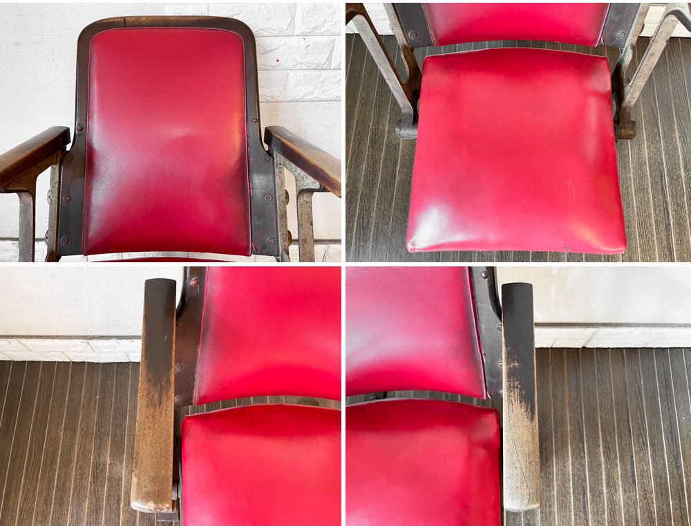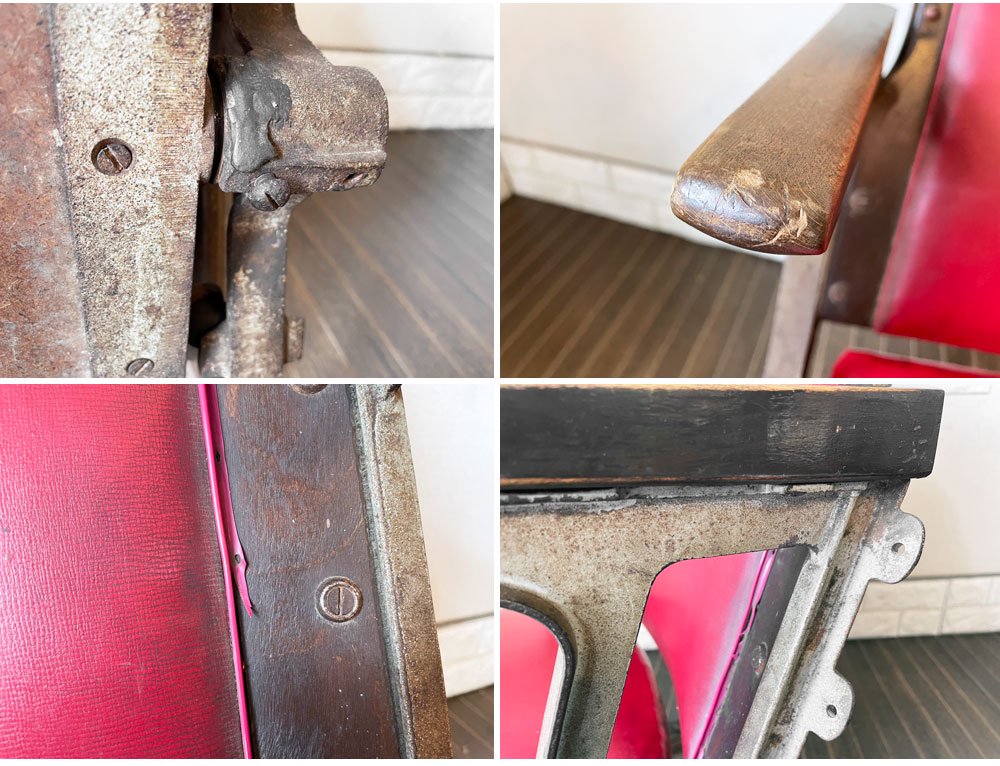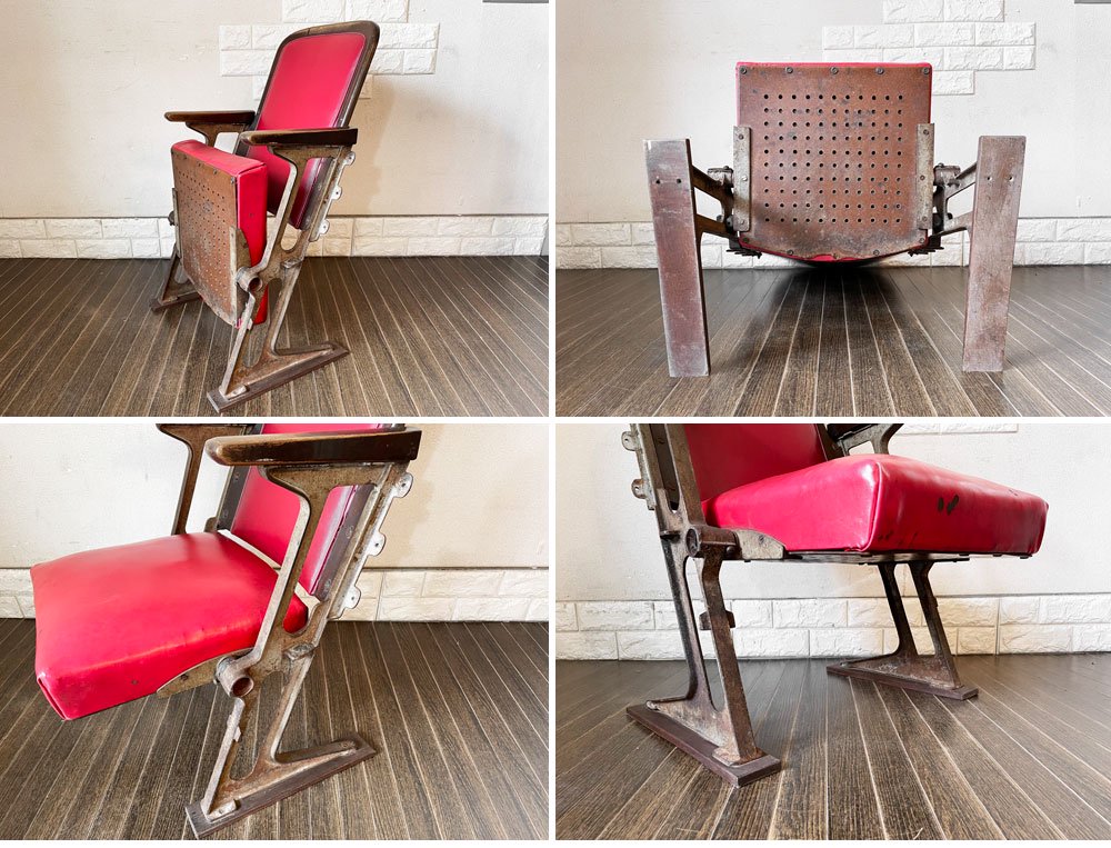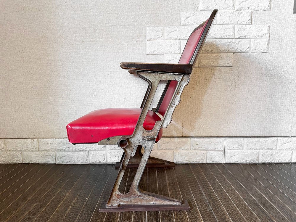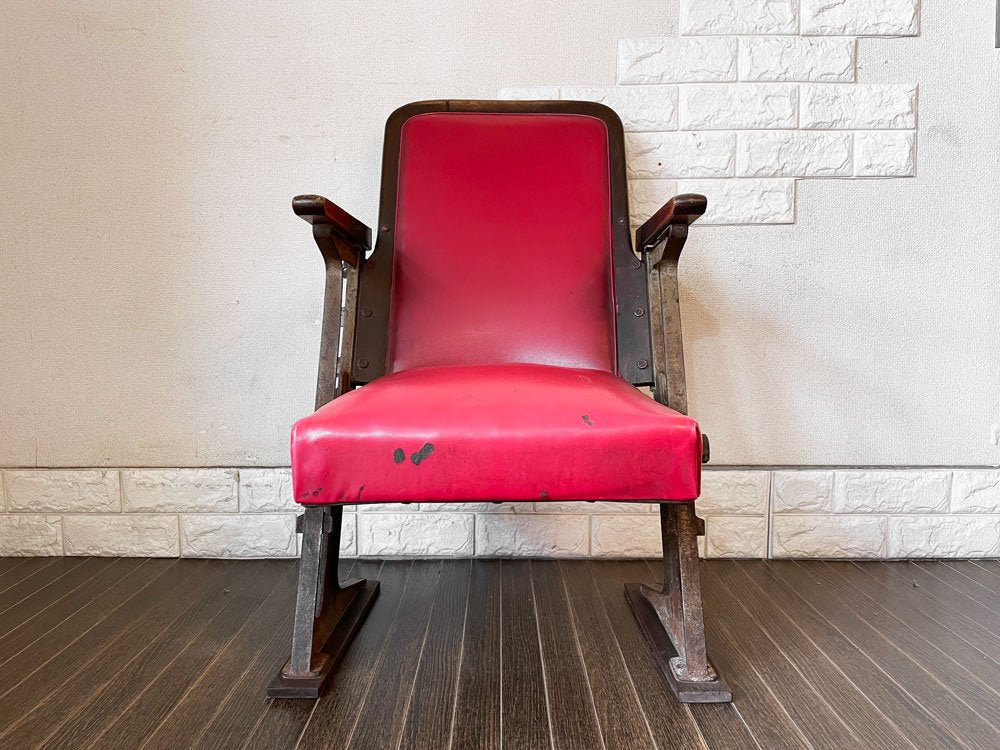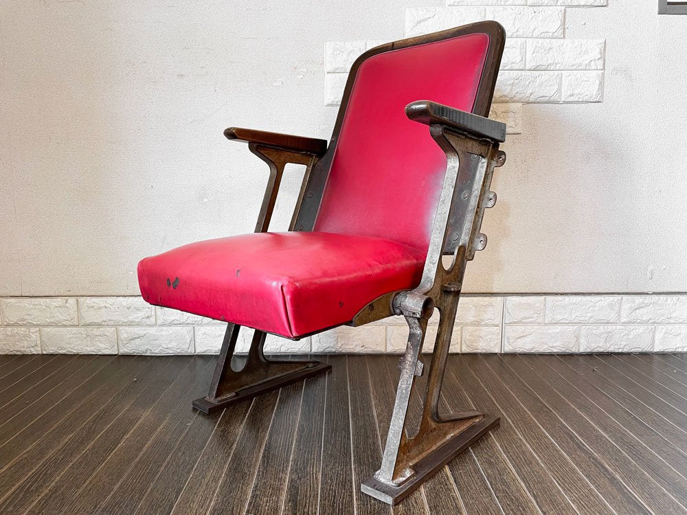 ジャパンビンテージ Japan Vintage シアターチェア シネマチェア 映画館椅子 折りたたみ ウッド&鋳物フレーム PVCレザーシート レッド 昭和レトロ ◎