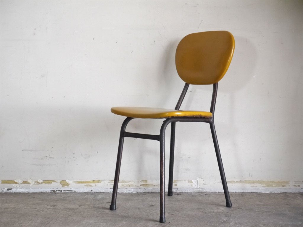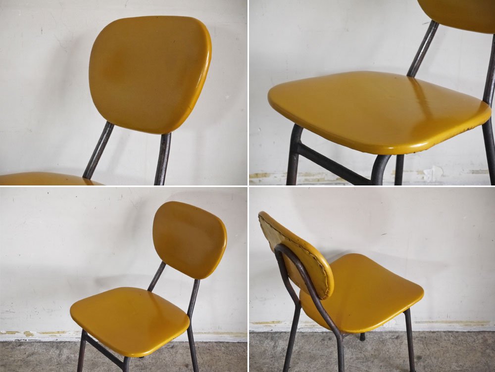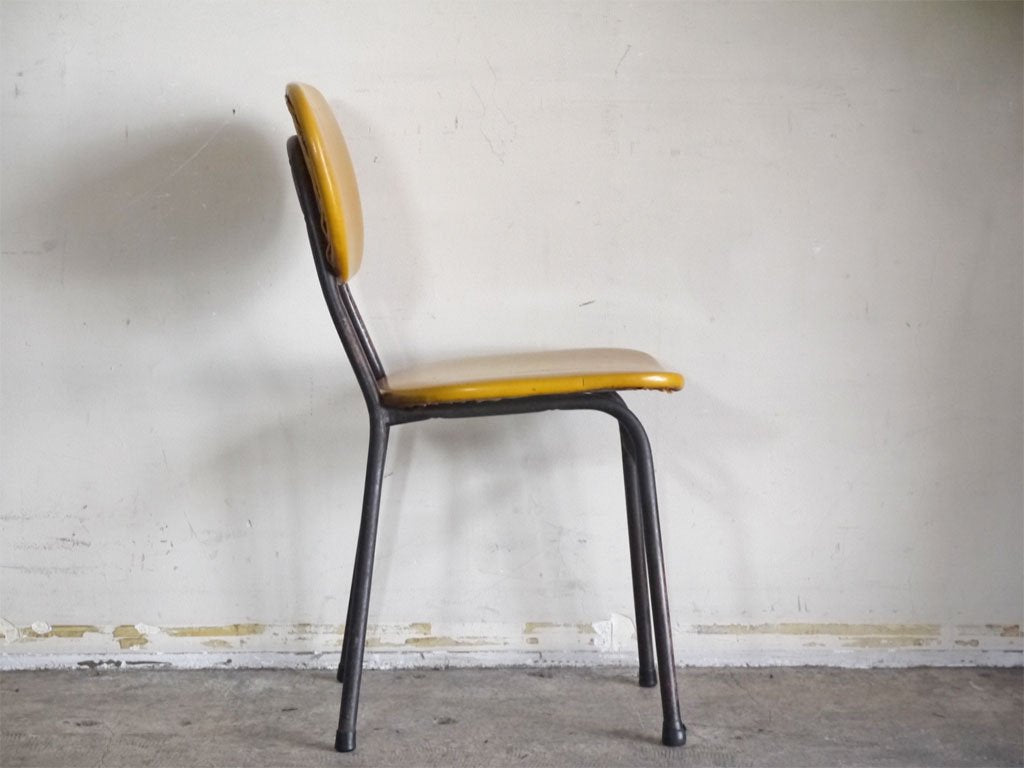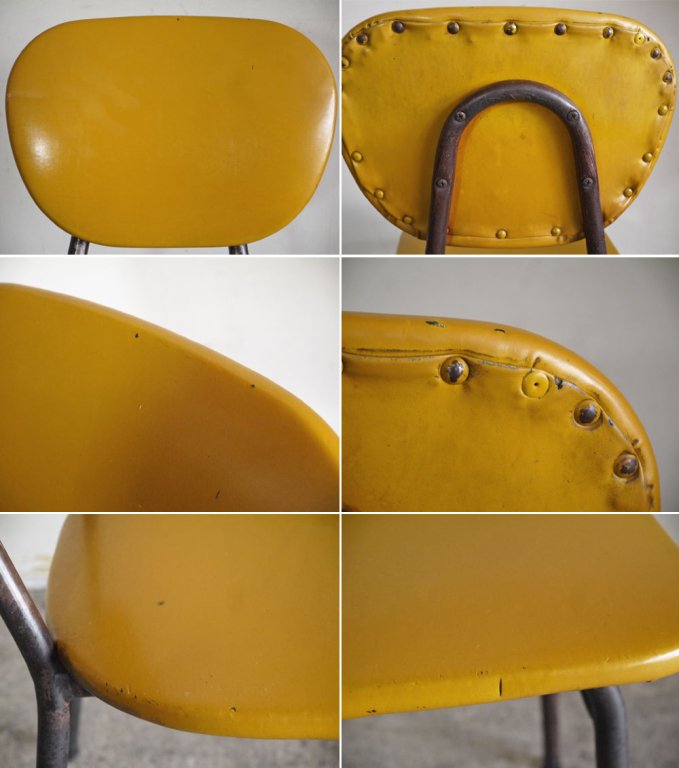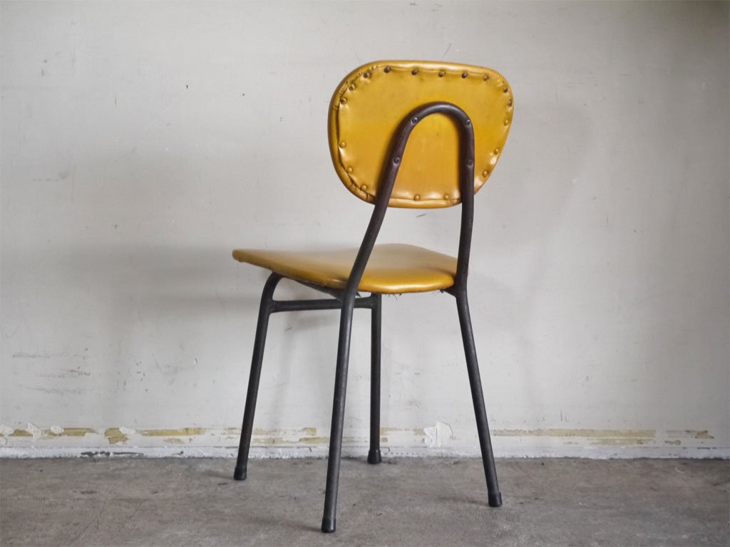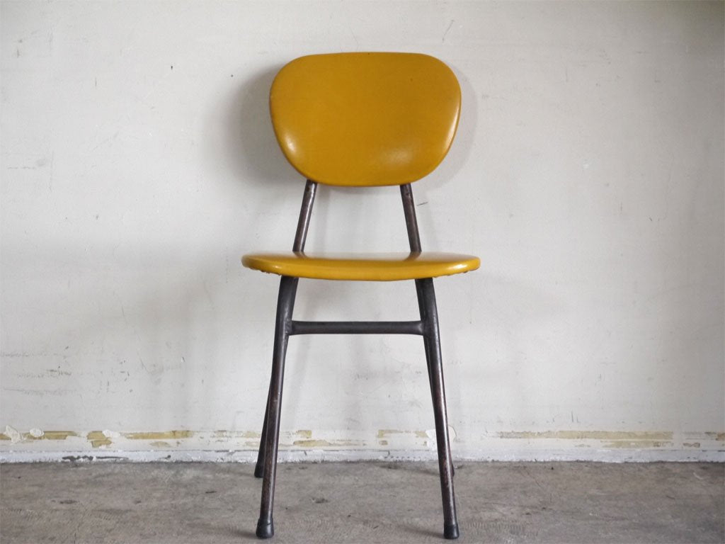ジャパンビンテージ Japan Vintage ダイニングチェア スチールフレーム PVCレザー イエロー C ■