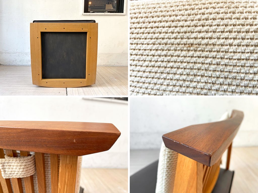 若干の傷やスレ、底面の傷や汚れなどがございますが、クッションのヘタリや大きく目立つようなダメージなどもございません。USED品として全体的に良好なコンディションを保っております。※元々は背クッションのないお品物となりますが、前所有者様が後付けにて背クッションを取り付けておりましたので、今回は背クッションも付属させて頂きますが、あくまでおまけ程度のものとお考え下さいませ。